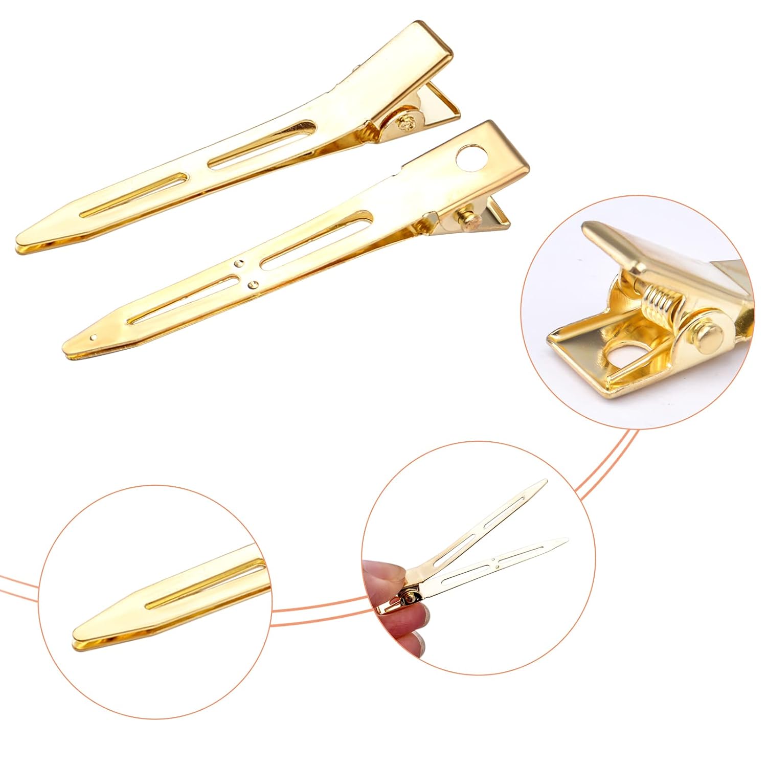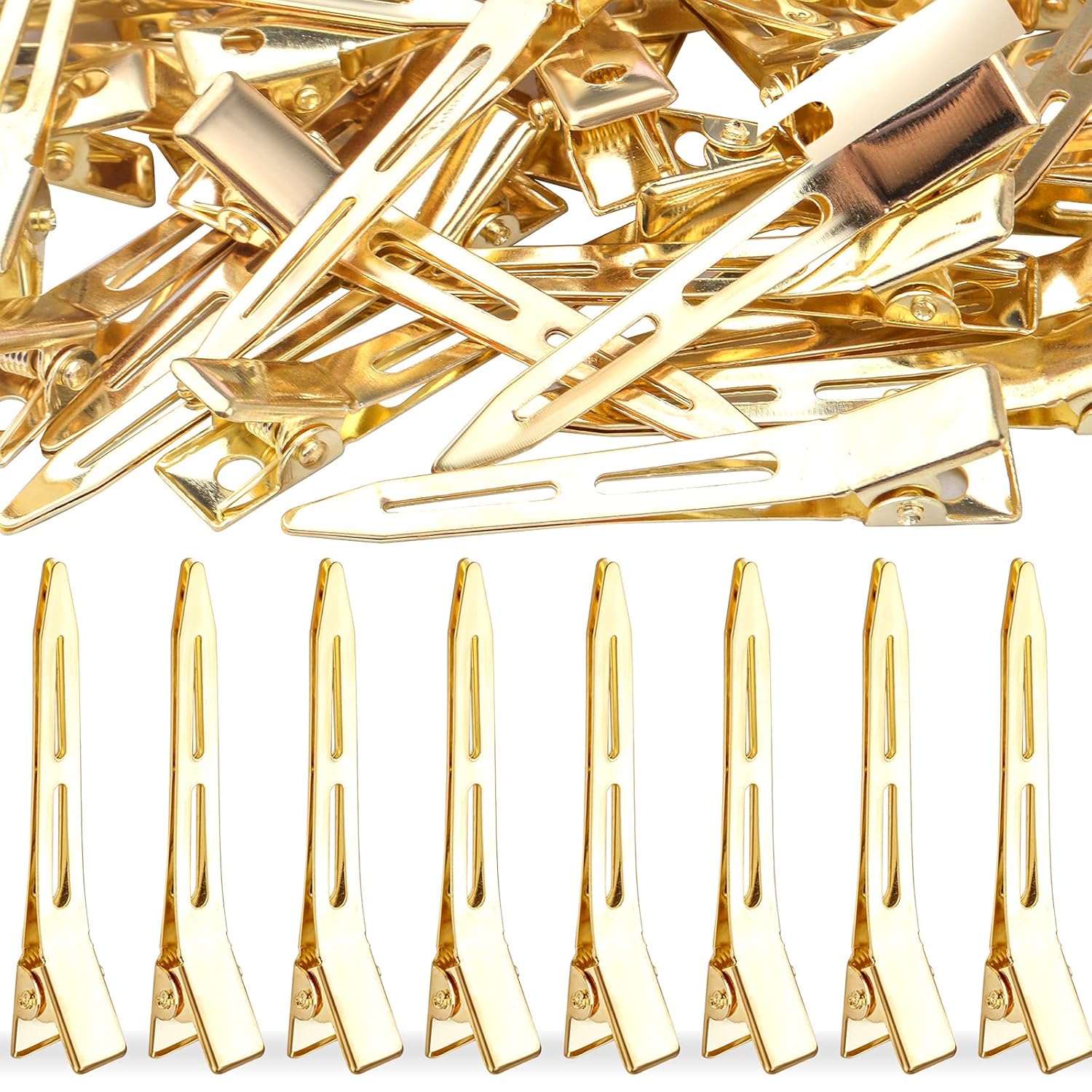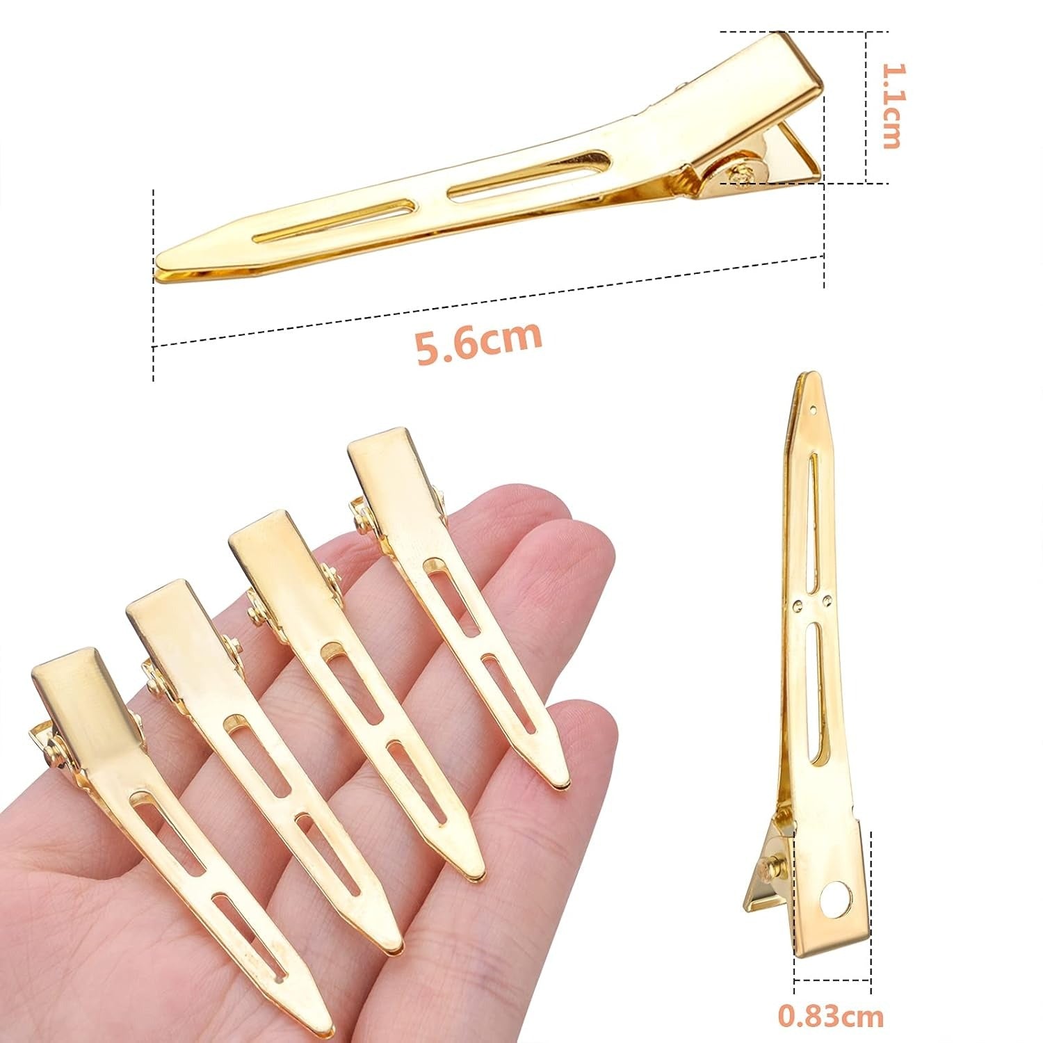 50pcs Golden Single Prong Curl Clips Alloy Alligator Hair Pins Clips Sectioning Hair Clips for Hair Extensions Styling Haircut Crafting, 5.6 cm x 0.83 cm x 1.1 cm