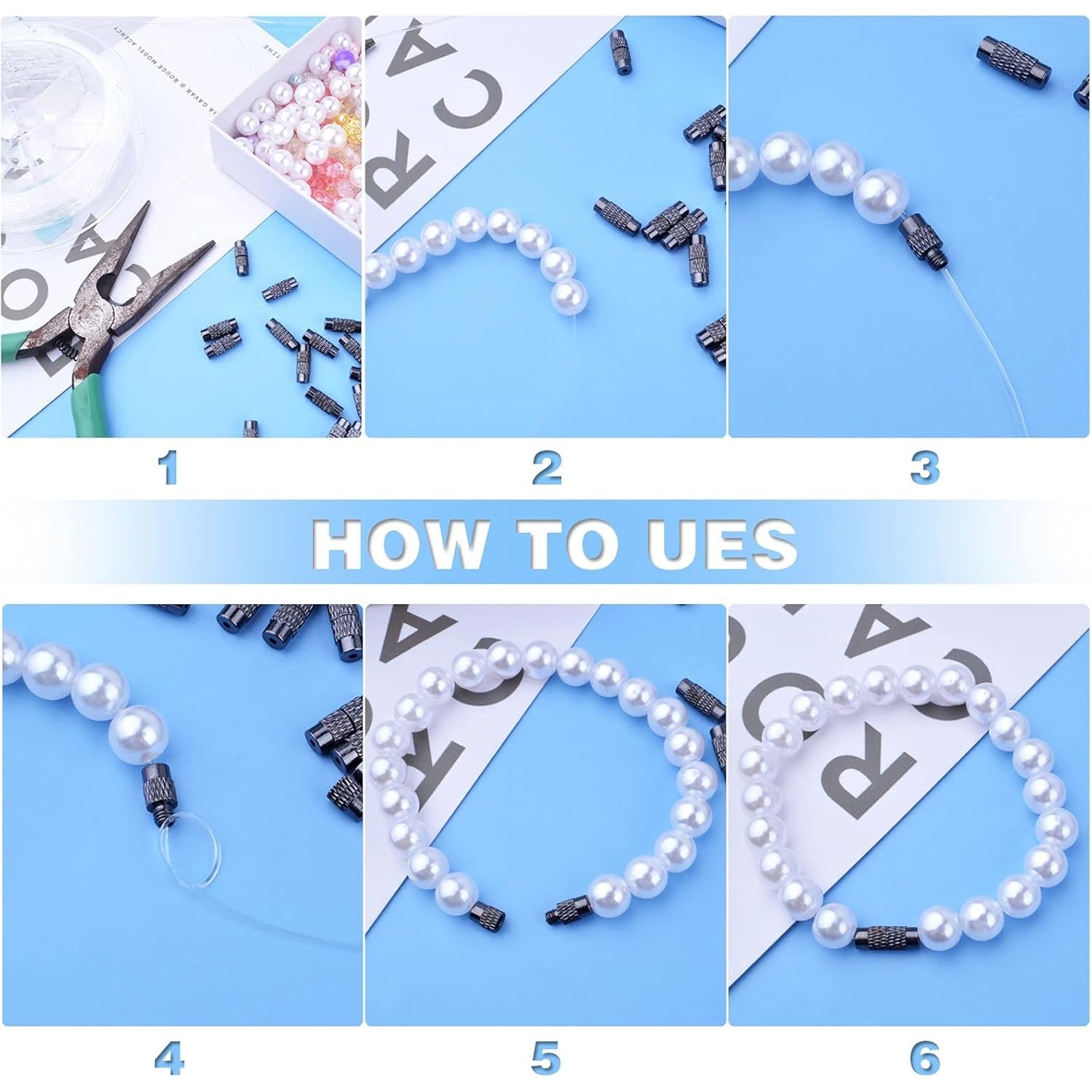 50pcs Gun Black Screw Twist Clasps Brass Barrel Tube Fastener Cord End Caps Jewelry Clasps Decorative Accessories for DIY Bracelet Necklace Craft Supplies Jewelry Making