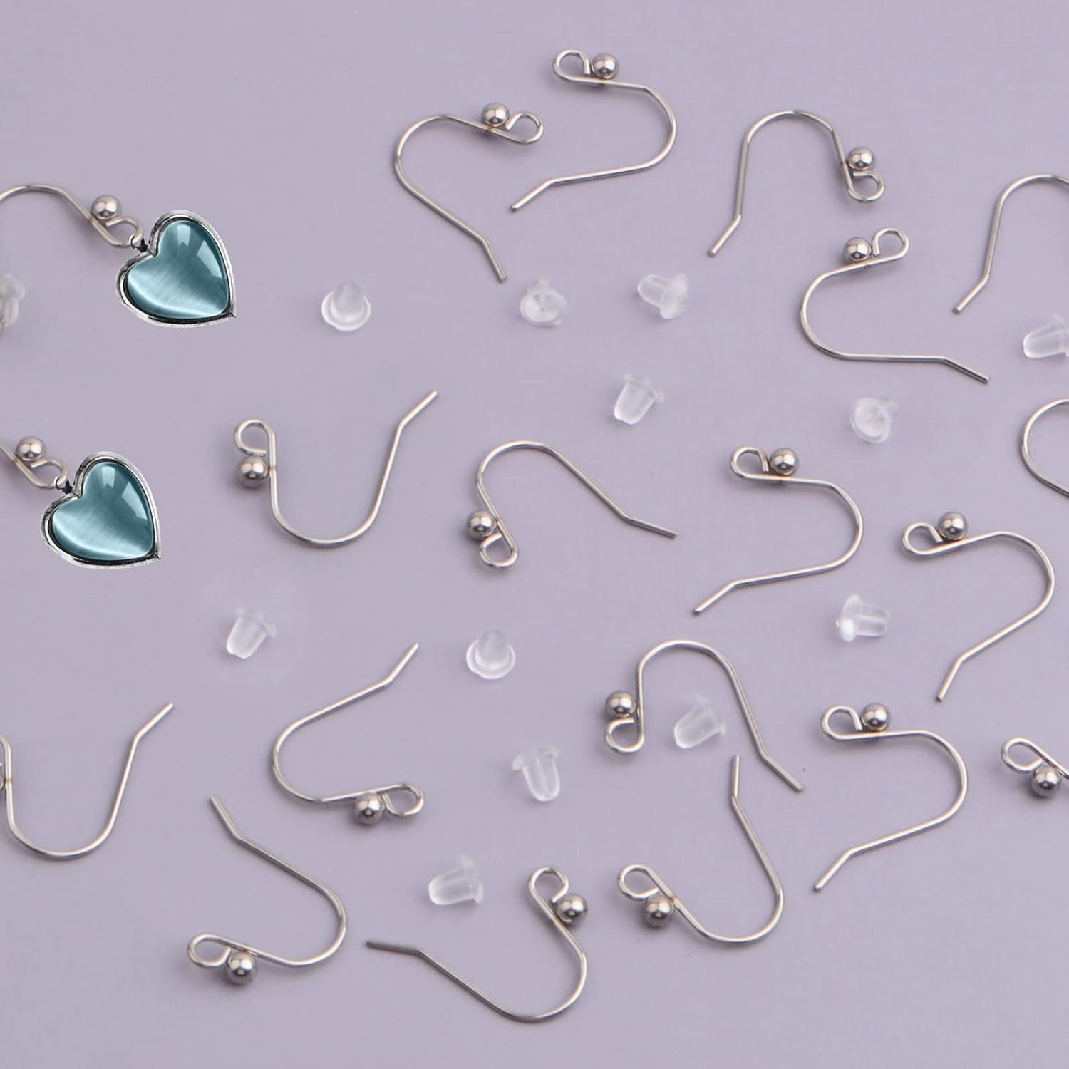 50pcs Stainless Steel French Earring Hooks Hypo-allergenic Ear Wires Ball Fish Hooks with 50pcs Clear Bullet Earring Backs for DIY Dangle Earrings Jewelry Making