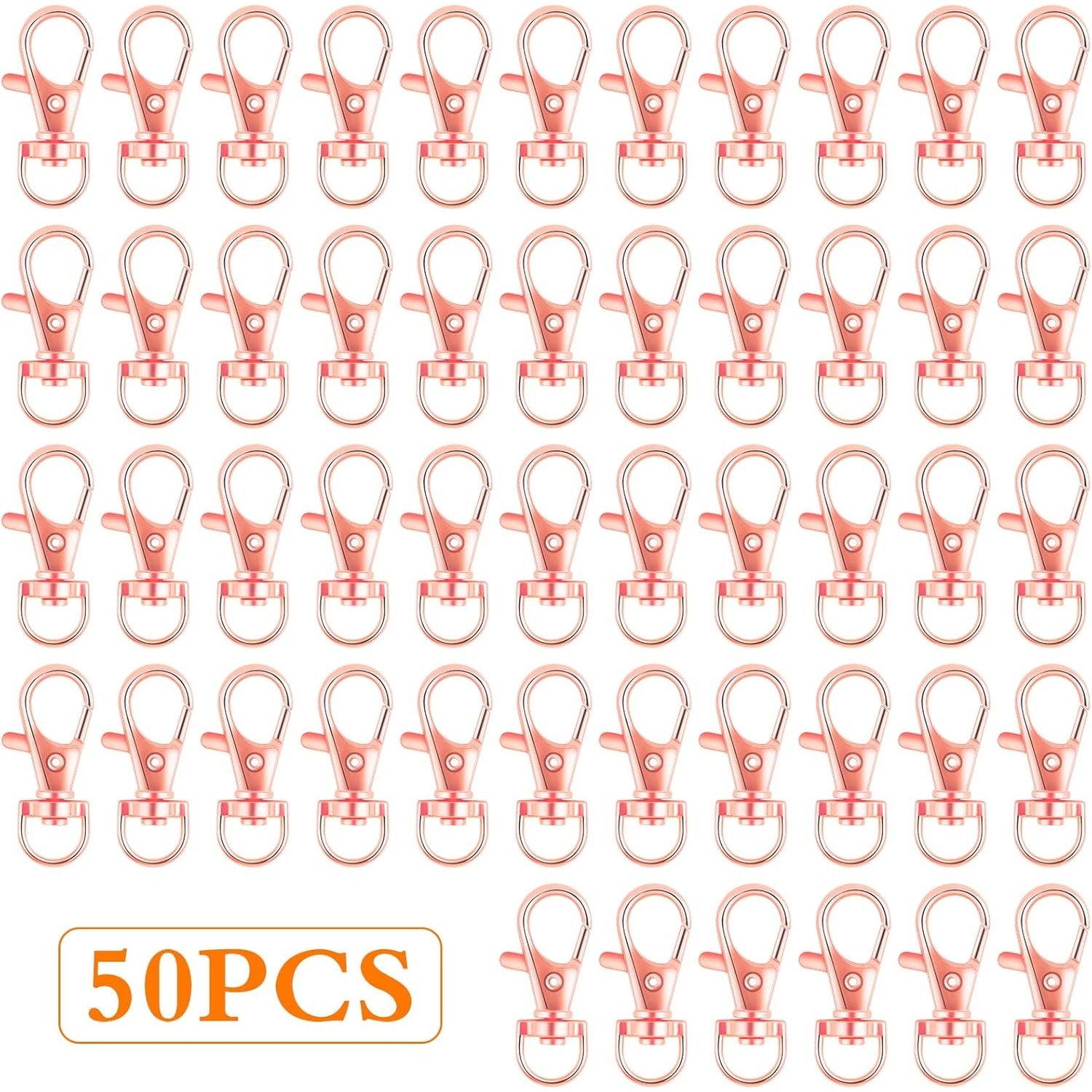 50pcs Swivel Lanyard Snap Hooks Lobster Claw Clasps Trigger Clips Hardware Accessories Jewelry Findings for DIY Keychain Handbag Purse Backpack Sewing Craft Projects, Rose Golden