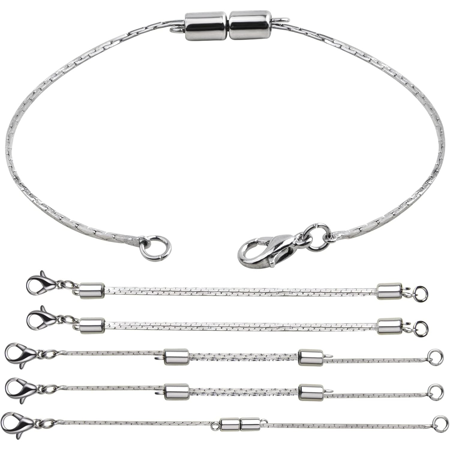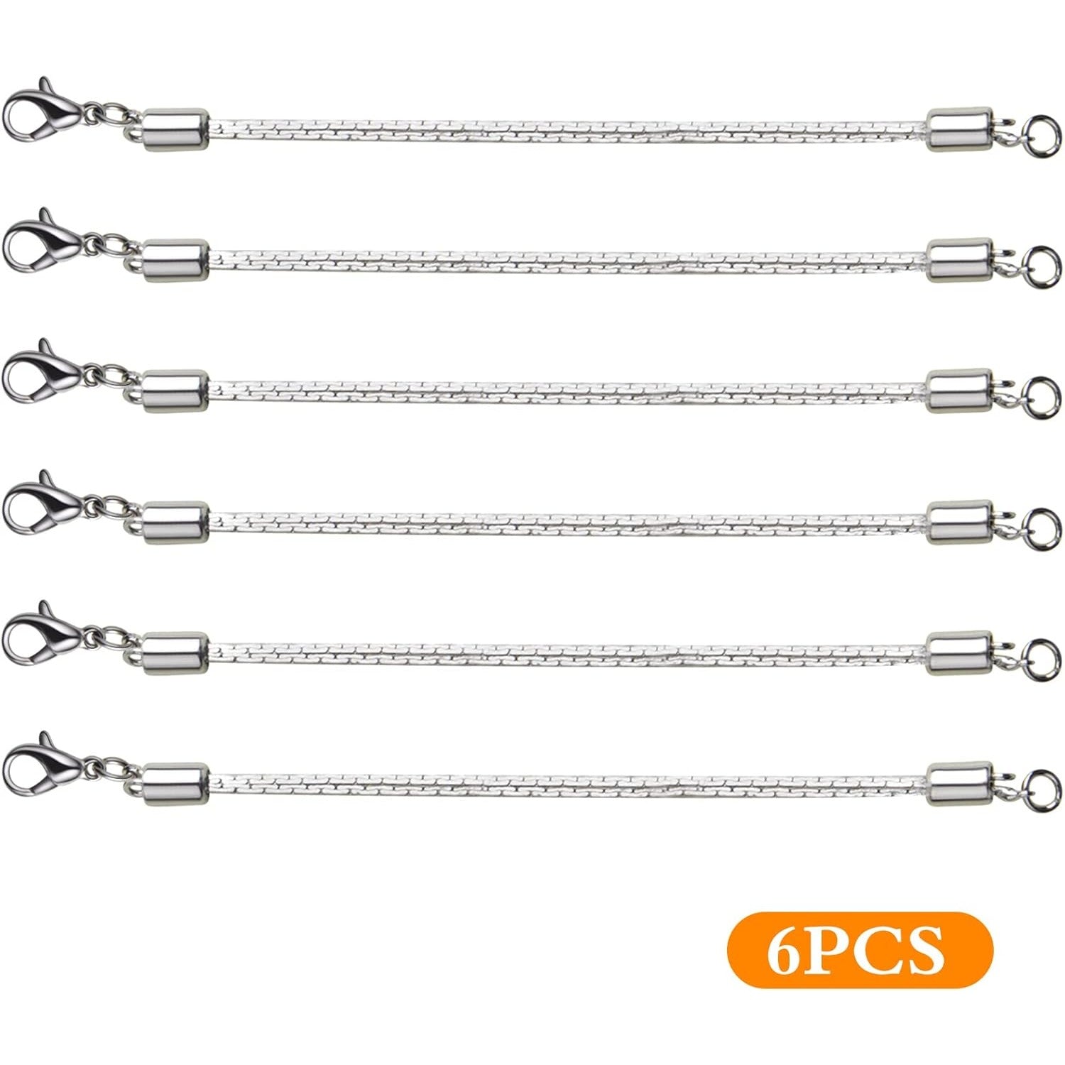 6 Pieces Stainless Steel Extender Chains Hypoallergenic Adjustable Sliding Necklace Extender Chains with Lobster Clasps for DIY Necklace Bracelet Jewelry Making Supplies