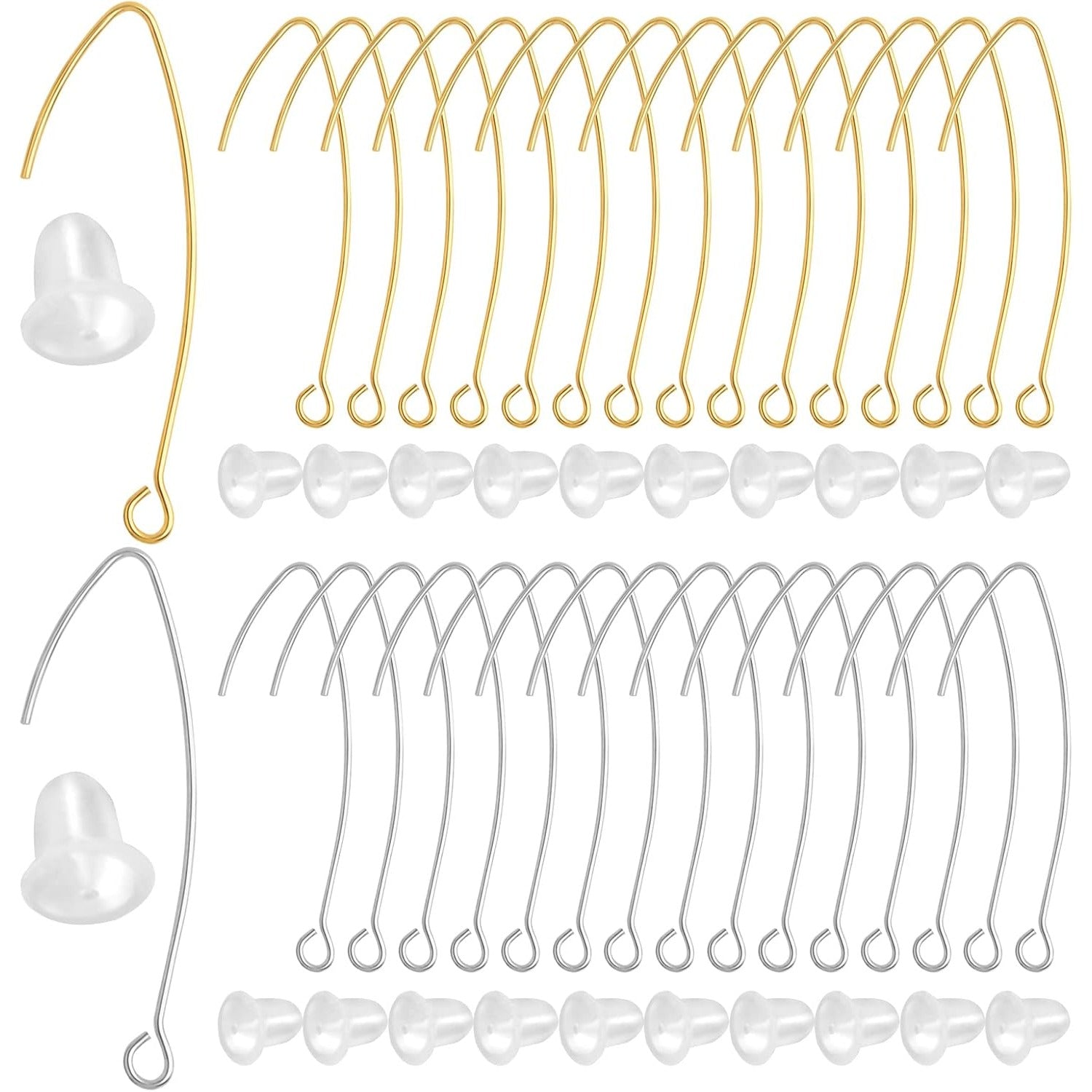 60pcs 2 Colors V Shape Earring Hooks Metal Ear Wires Drop Earring Hooks Components and 60pcs Clear Bullet Earring Backs for DIY Dangle Jewelry Making Findings