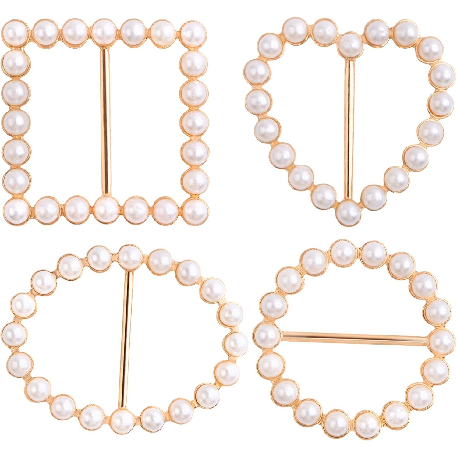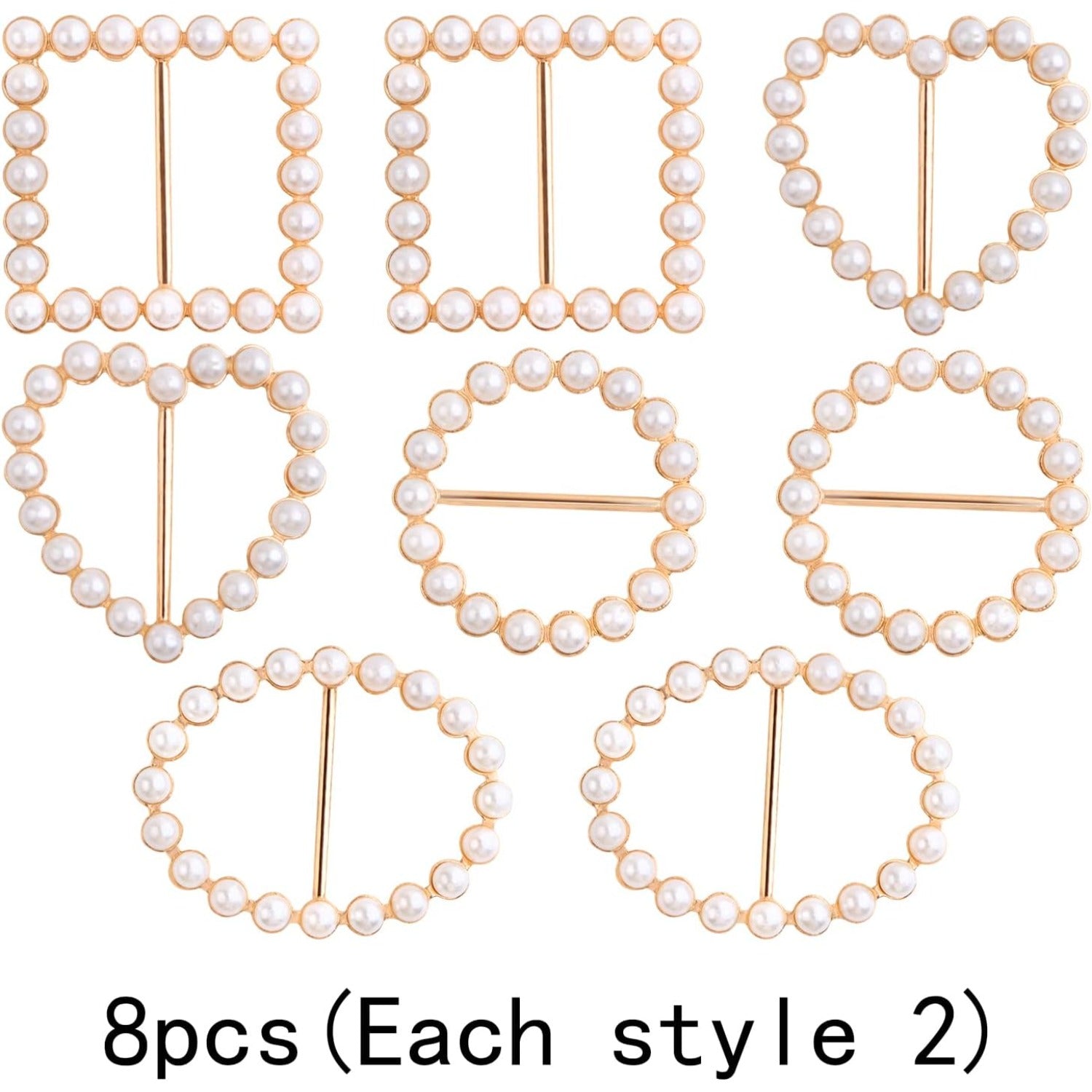 8pcs 4 Styles Metal T Shirt Scarf Clip Ring Round Square Oval Heart Shape Scarf Ring Clip Buckle with Pearl for Clothing Ring Wrap Holder Parties Costume Clothes Corner