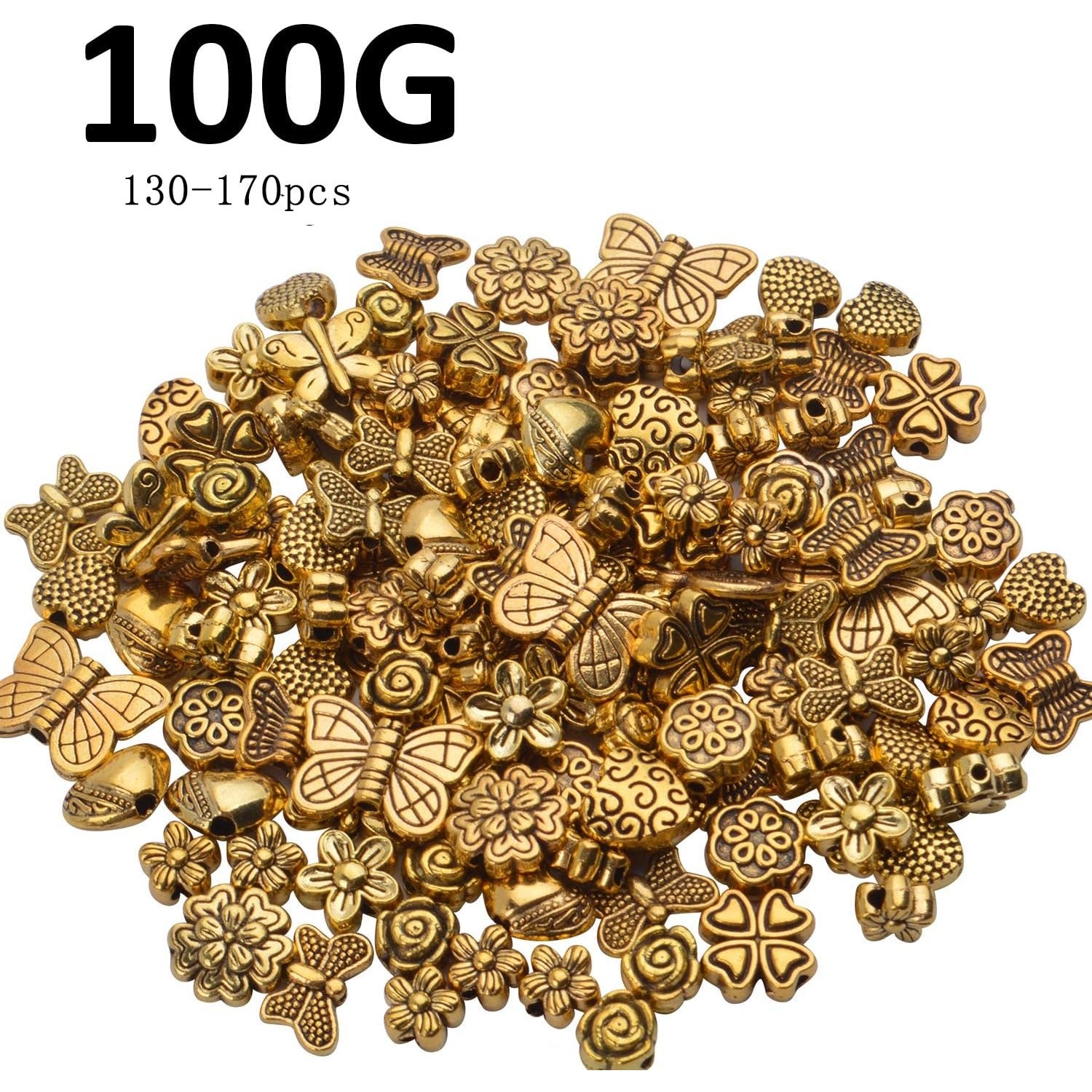 100 Gram(About 130-170pcs) Antique Gold Alloy Heart Butterfly Flower Beads Charm Bead Spacers Jewelry Findings Accessories for Bracelet Necklace Jewelry Making