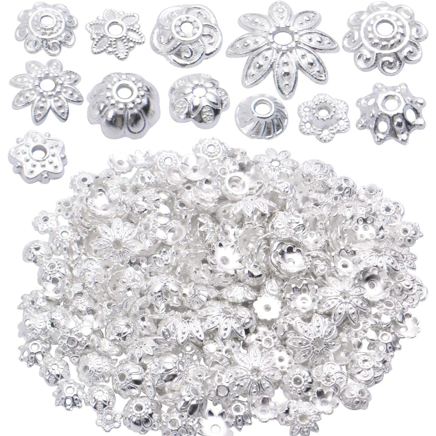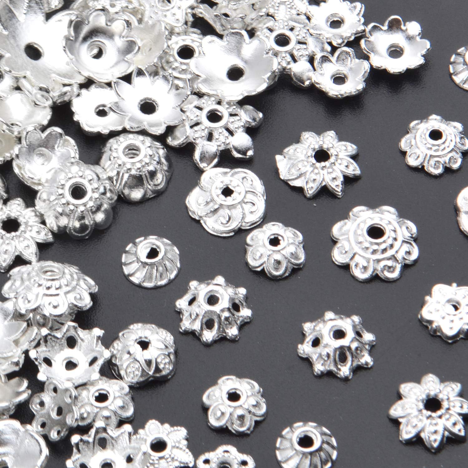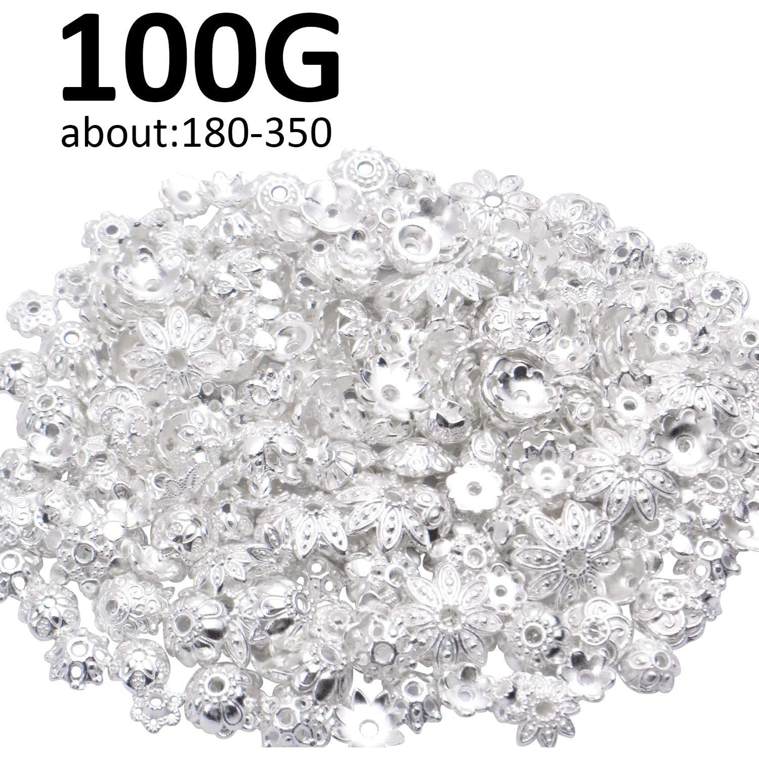 100 Gram(About 180-350pcs) Bead Caps Metal Spacers Jewelry Findings Accessories for Bracelet Necklace Jewelry Making,Silver