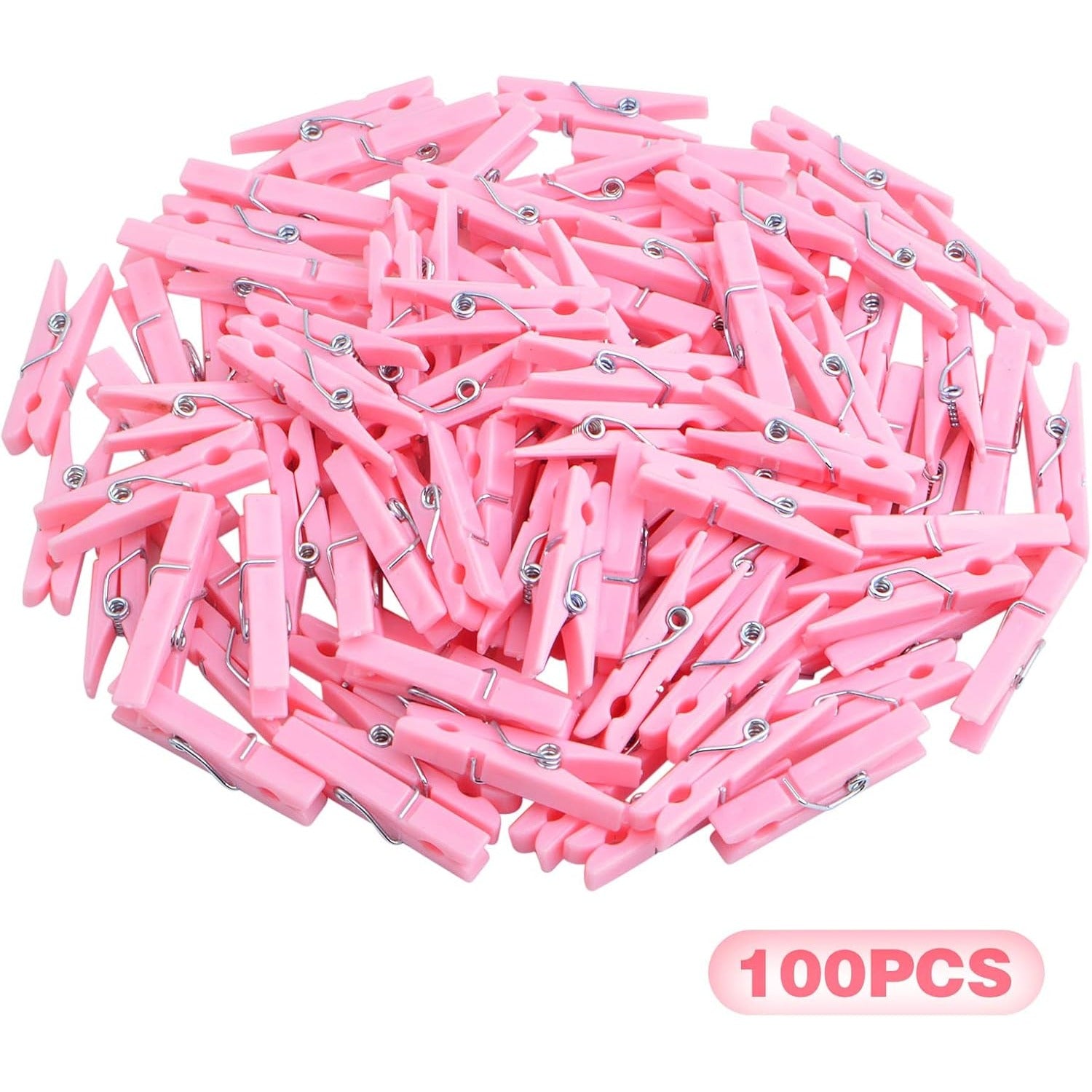 100 Piece Pink Plastic Photo Clips Small Laundry Clothespins Clips Decorative Craft Paper Clips for String Fairy Lights Picture Home Office Decor, 34 x 5 x 8.5 mm