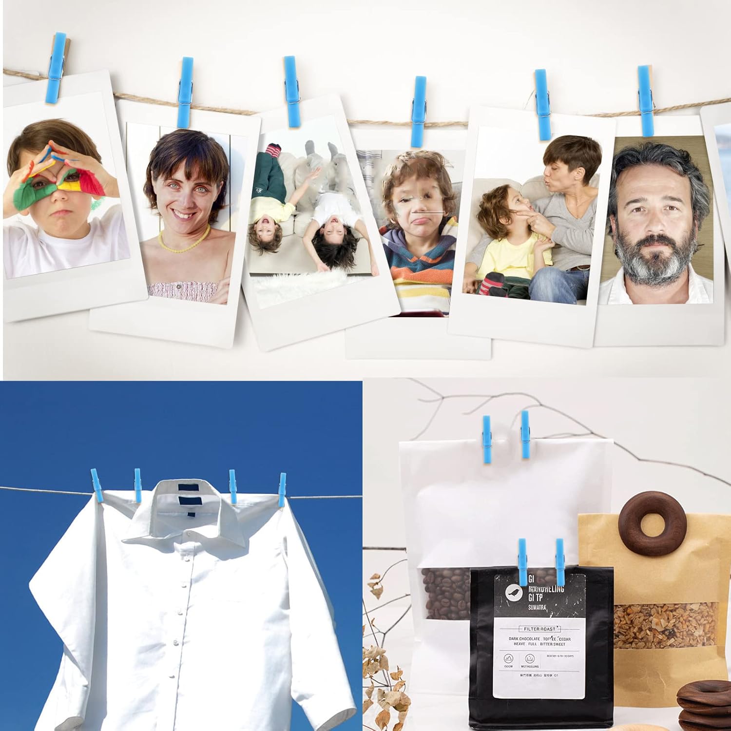 100 Pieces Blue Plastic Photo Clips Mini Utility Paper Clip Clothespins Peg Pin Clips for Hanging Pictures Arts Crafts, 3.4 cm x 0.5 cm