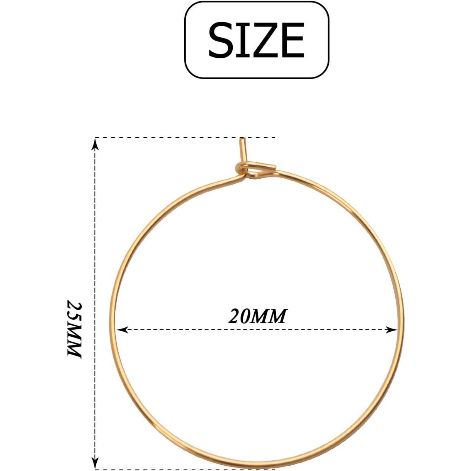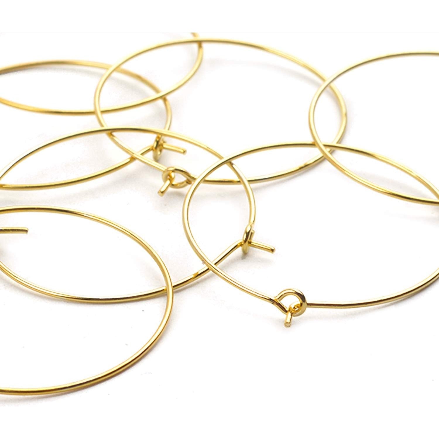BronaGrand 100 Pieces Gold Plated Wine Glass Charm Rings Earring Hoops 20mm