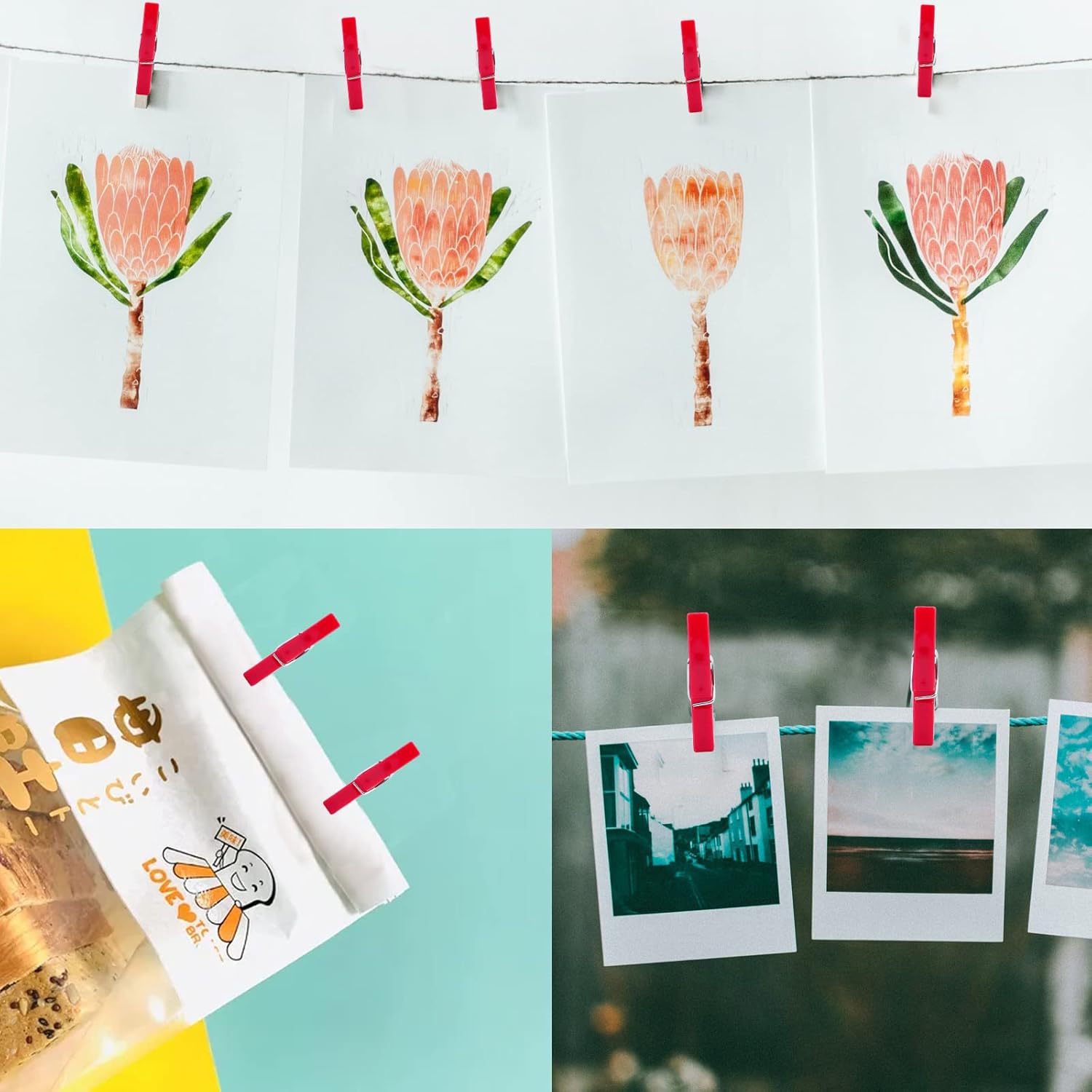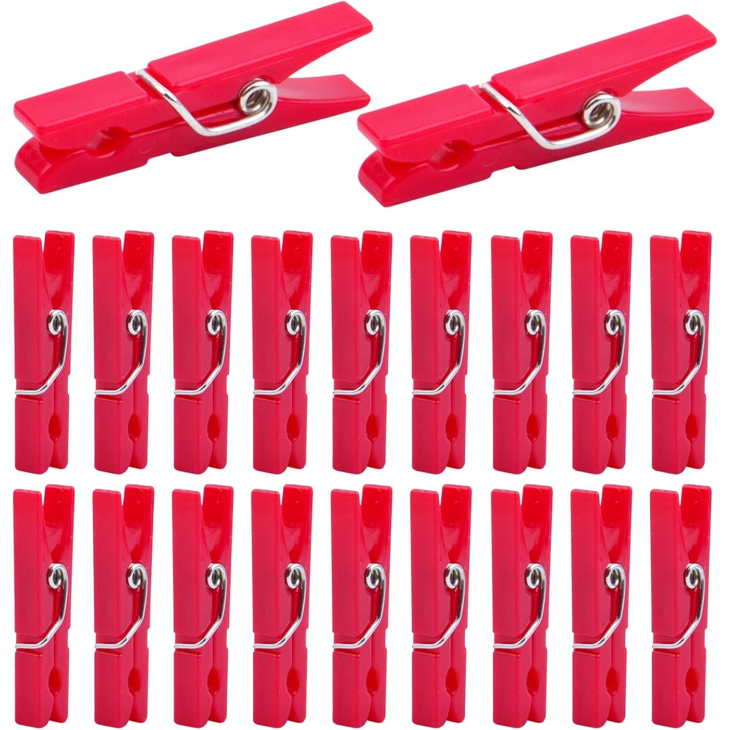 100 Pieces Photo Clips Plastic Picture Paper Clip Mini Laundry Clothespins Peg Pins for Home School Arts Crafts Decoration, 3.4 x 0.5cm(Red)