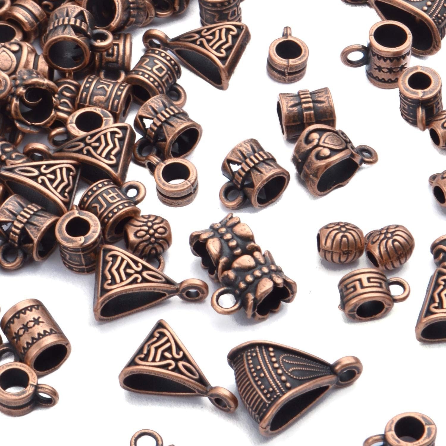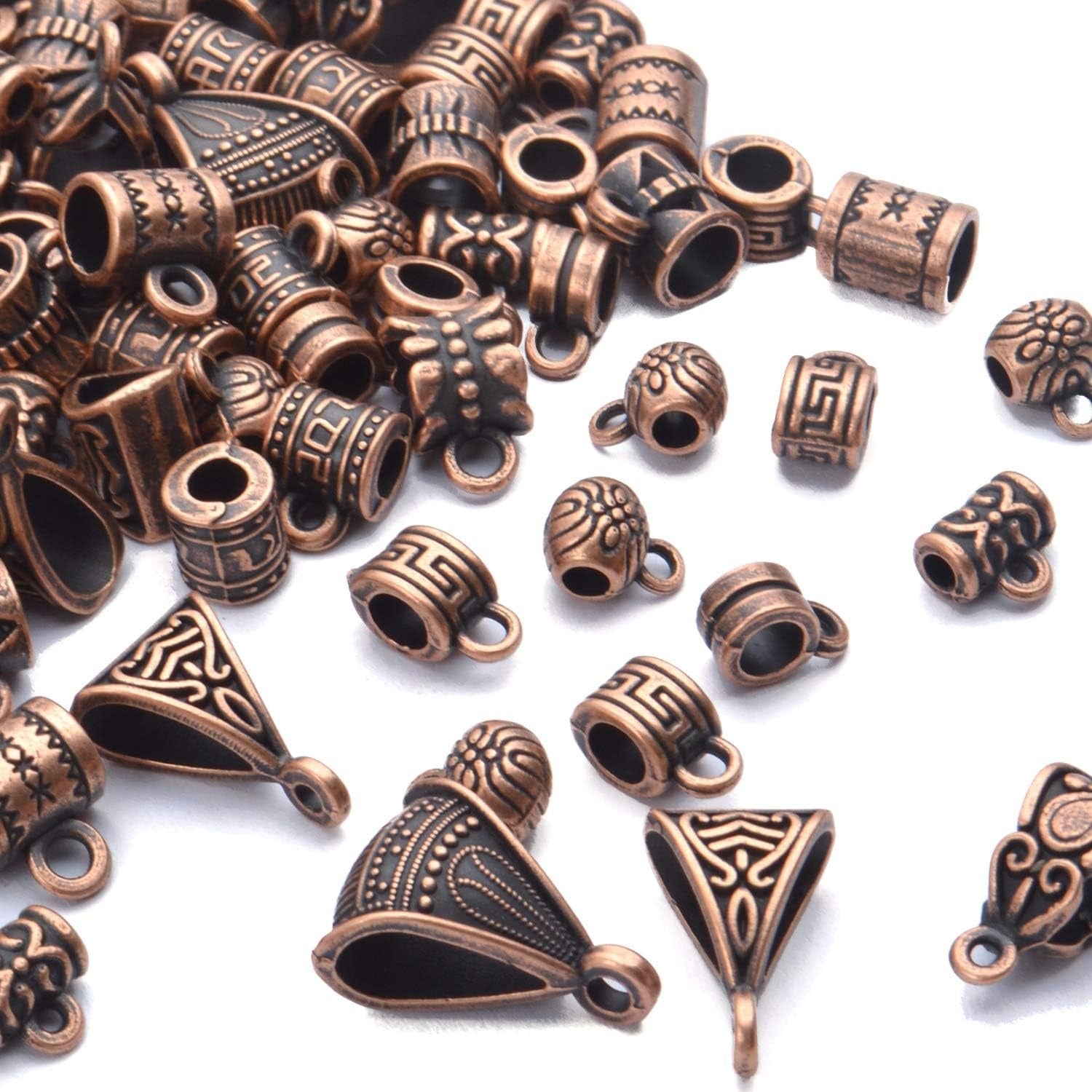 100g (About 120-170pcs) Mixed Antique Copper Bail Beads,Spacer Bead,Bail Tube Beads,Bracelet Charms,Necklace Pendants for Jewelry and Craft Making