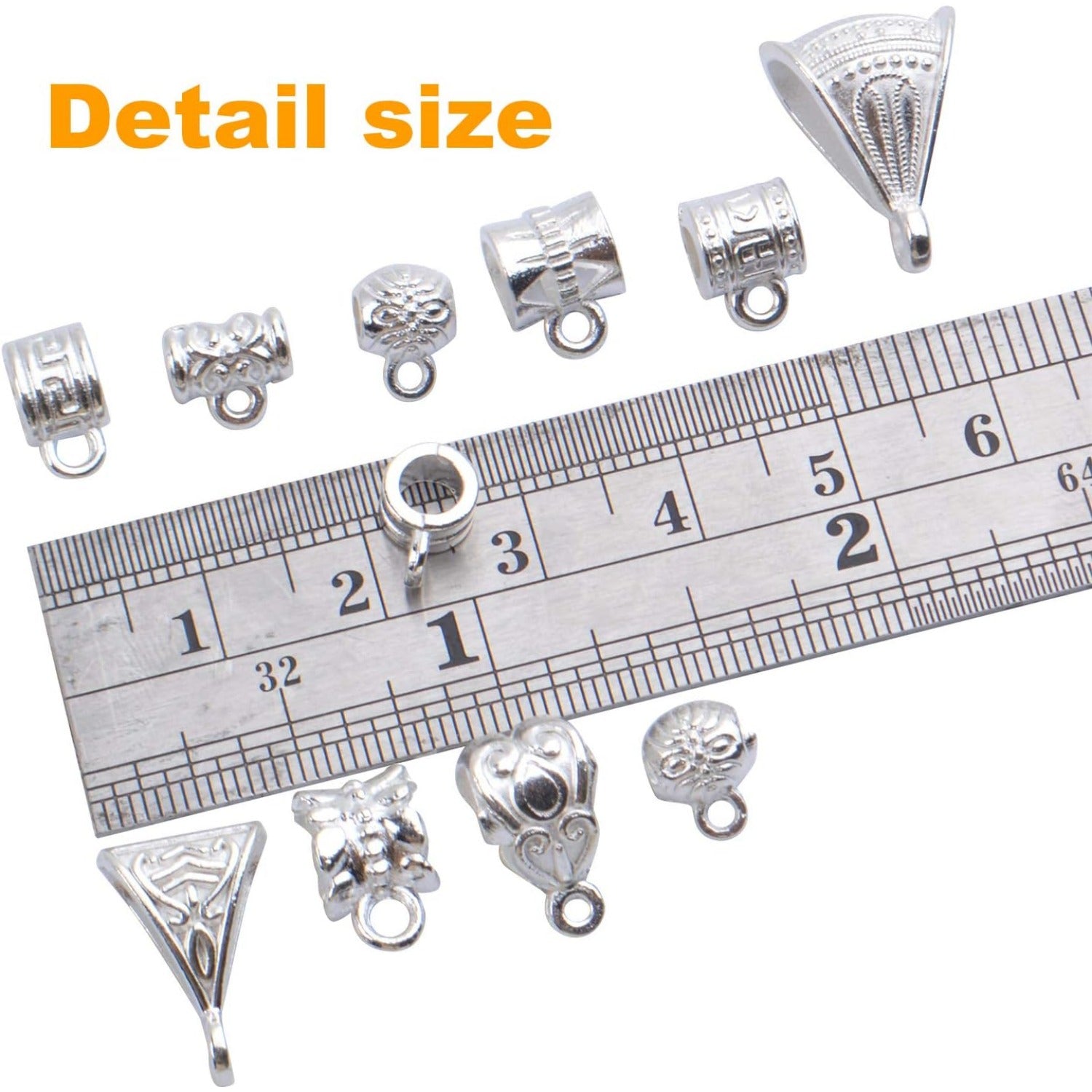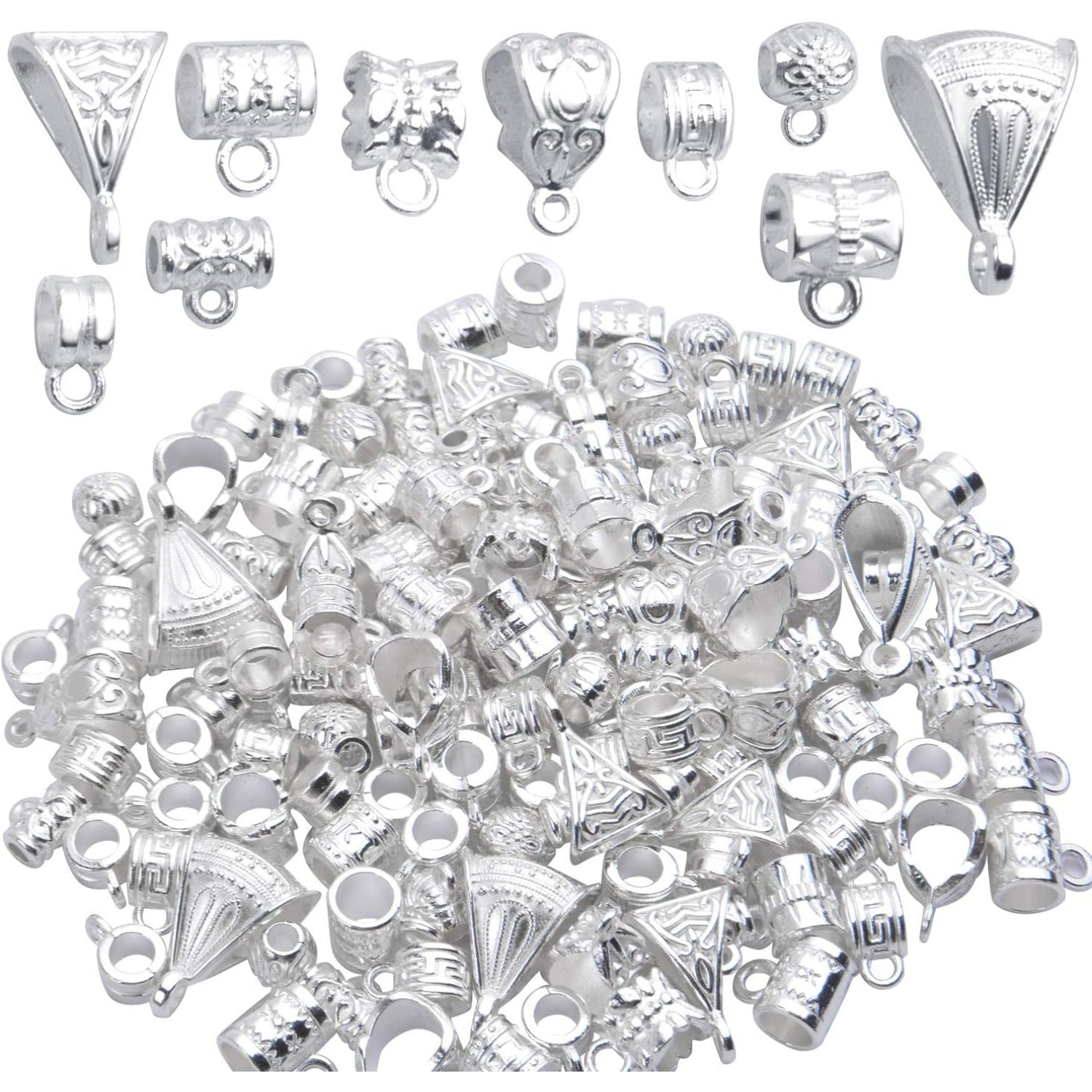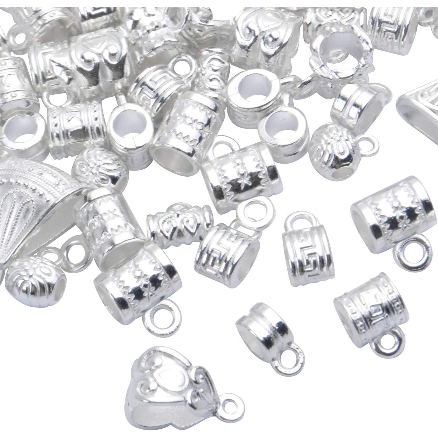 100g (About 120-170pcs) Mixed Bright Silver Bail Beads,Spacer Bead,Bail Tube Beads,Bracelet Charms,Necklace Pendants for Jewelry and Craft Making