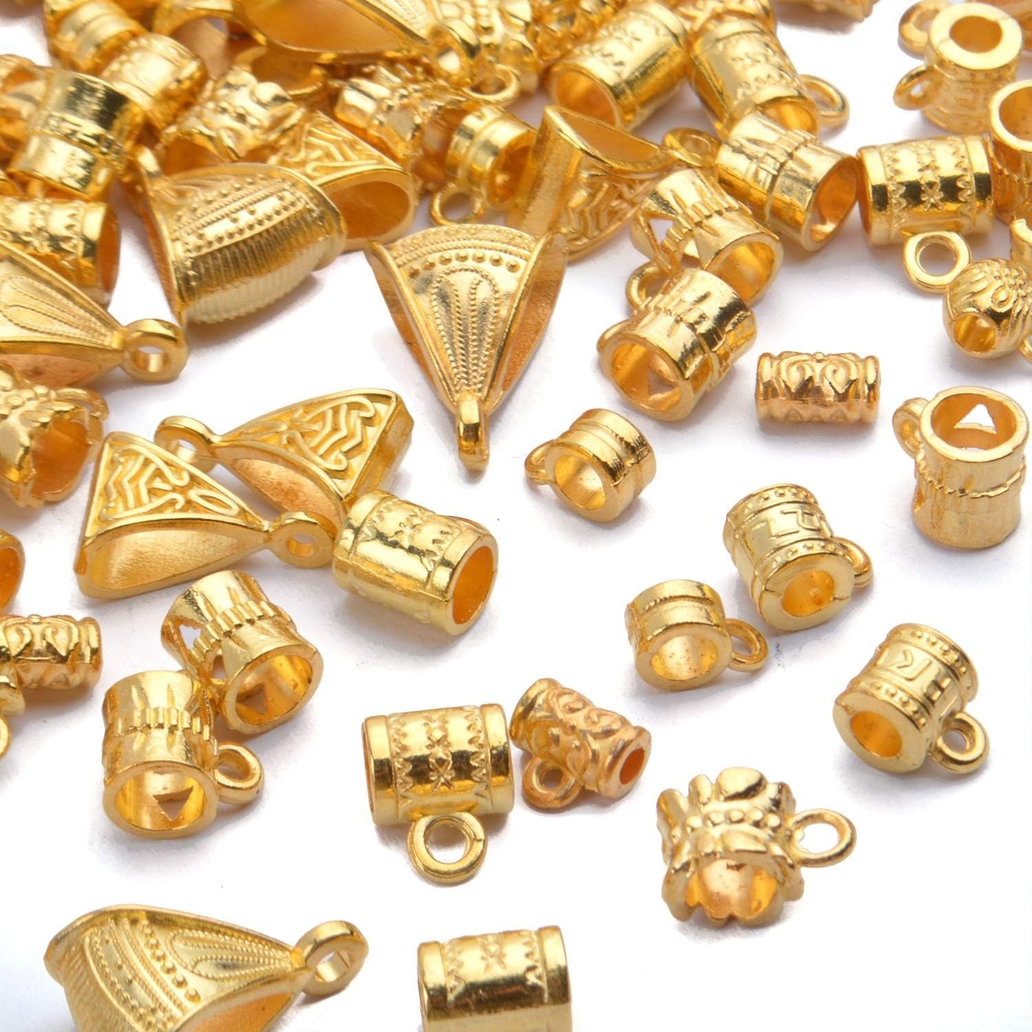 100g (About 120-170pcs) Mixed Gold Bail Beads,Spacer Bead,Bail Tube Beads,Bracelet Charms,Necklace Pendants for Jewelry and Craft Making