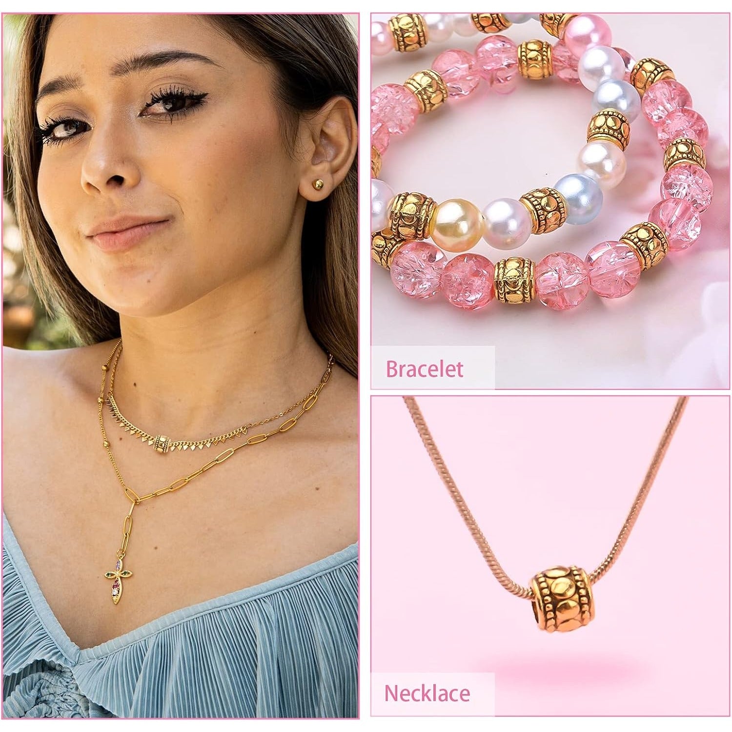 These spacer beads can be well matched with rhinestones, gemstone beads, pearly shells, etc. They are ideal accessories for jewelry crafts making