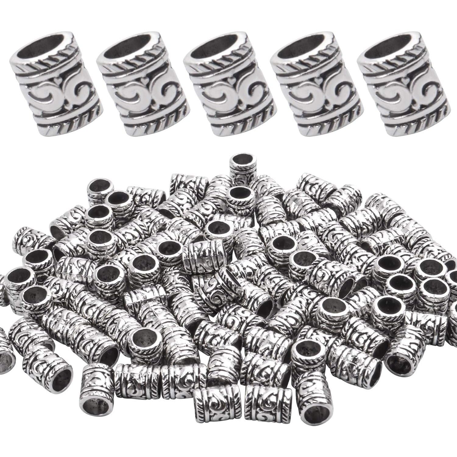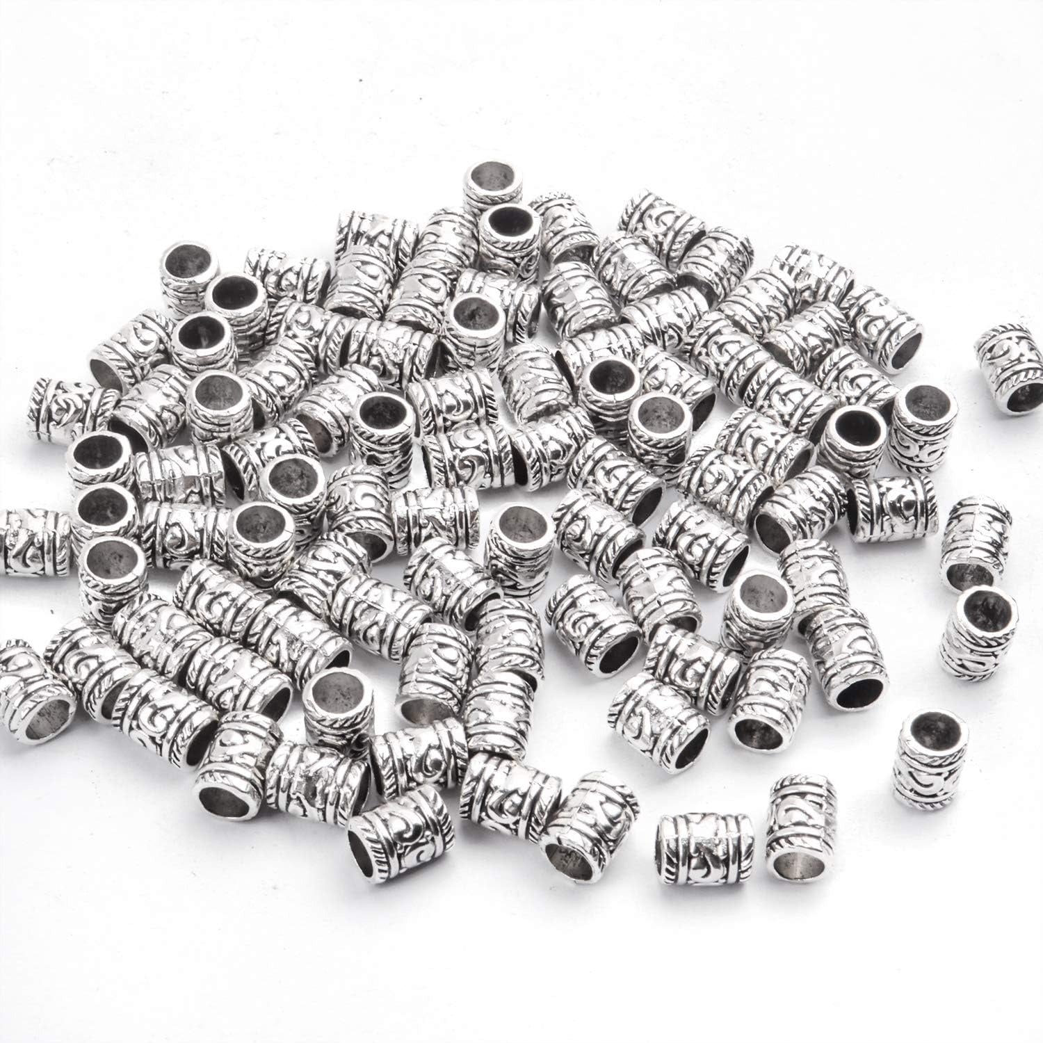 100pcs Antique Silver Spacer Beads Large Hole Beads Charms Hollow Tube Bead for DIY Necklace Bracelets