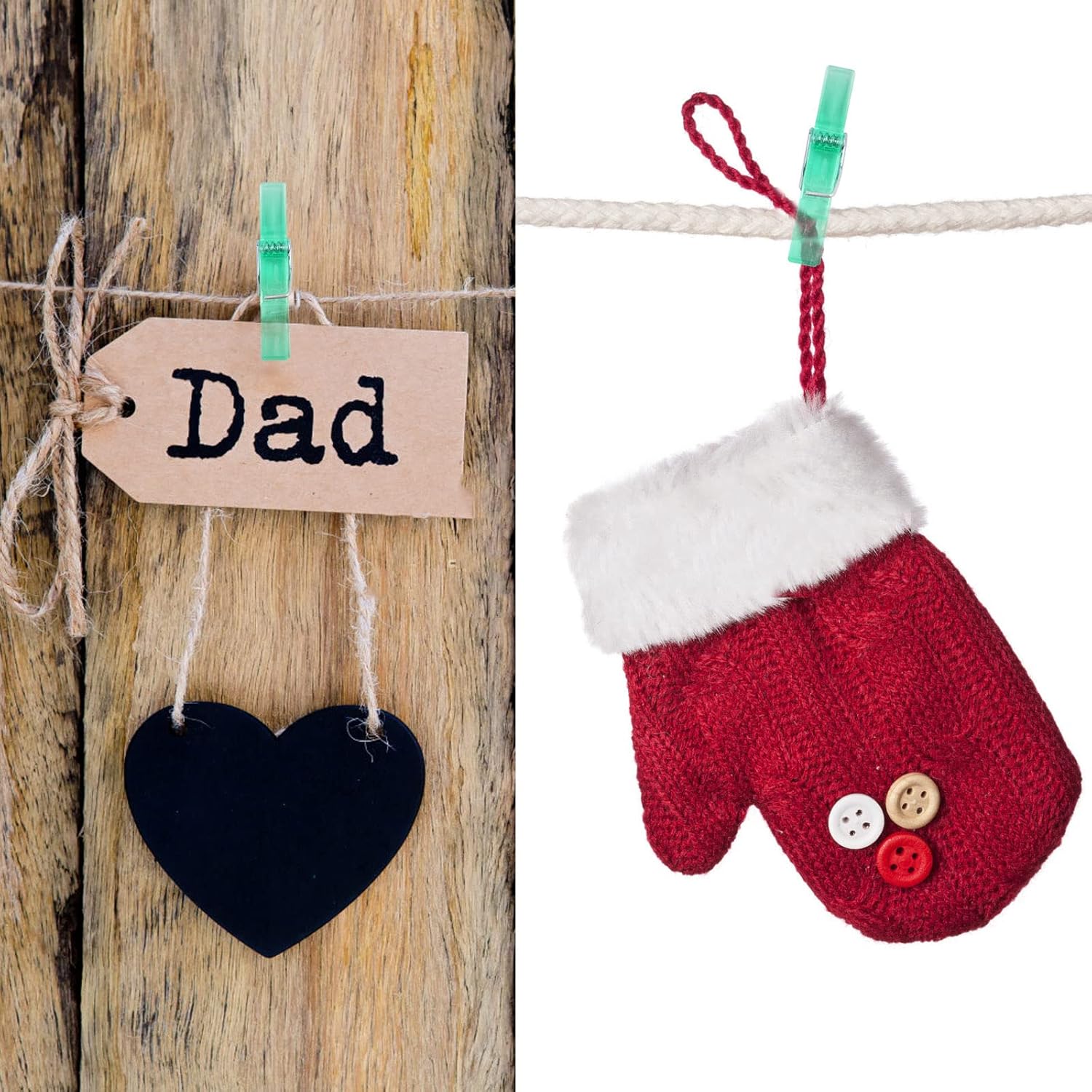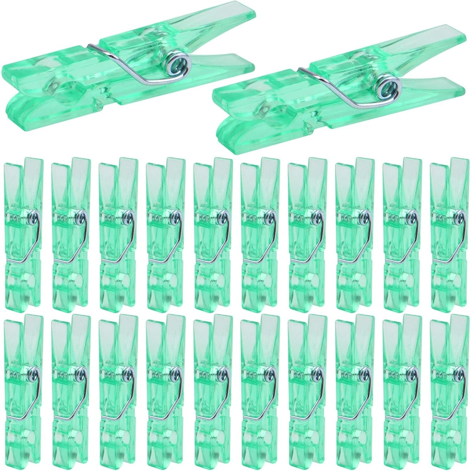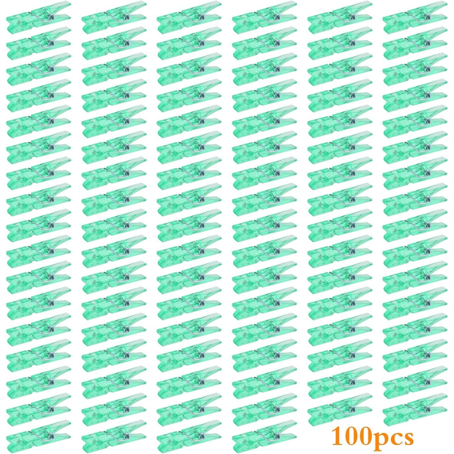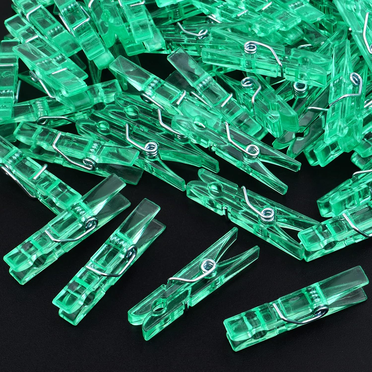 100pcs Green Plastic Clothespins Mini Clear Clips Hanging Pictures Paper Peg Pins for DIY Arts Crafts and Wedding Party Photo Holder Card Decoration, 34 x 7 x 5 mm