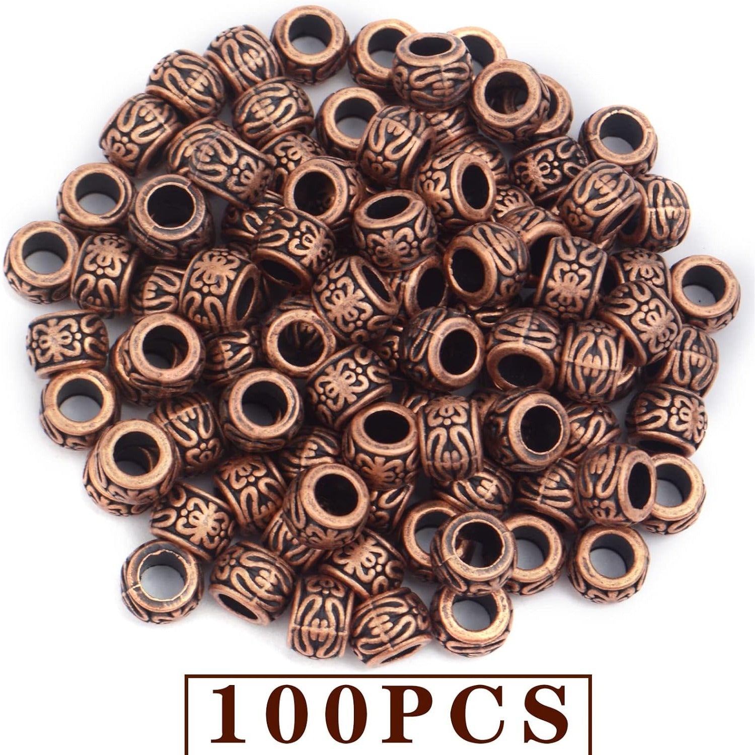 BronaGrand 100pcs Large Hole Spacer Beads Tibetan Alloy European Rondelle Spacers Vintage Loose Charm Beads for DIY Necklace Bracelet Jewelry Making, 7.8x5.5mm, Hole: 4.5 mm