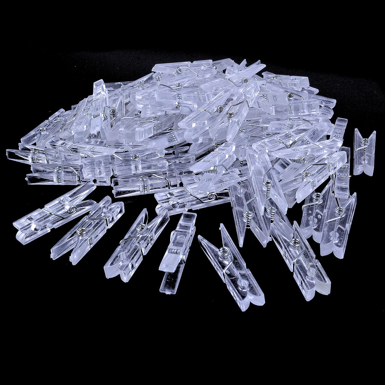 BronaGrand 100pcs Mini Clear Plastic Utility Paper Clip, Clothespins Clip, Clothes Line Clips,Photo Clips