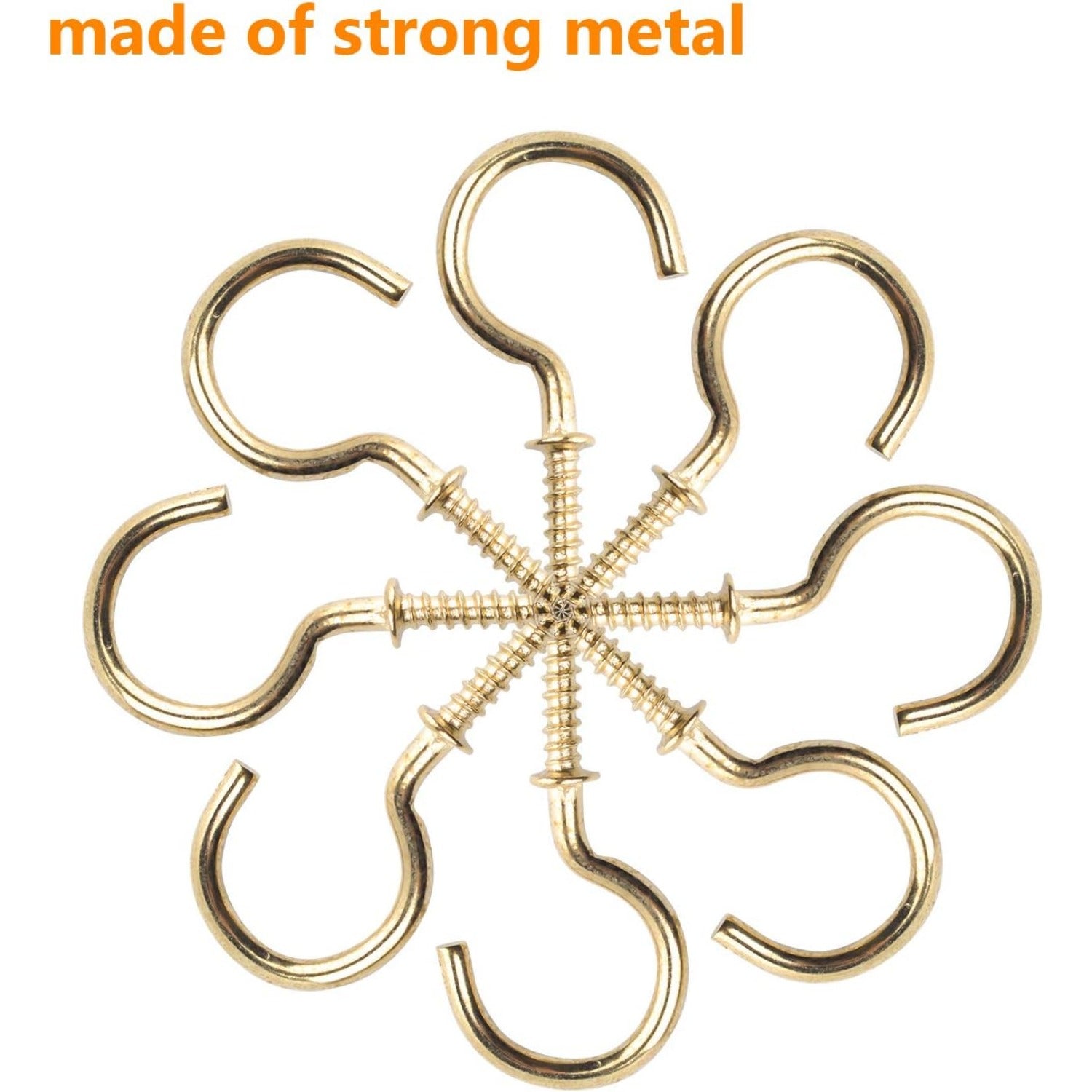 BronaGrand 100pcs Nickel Plated Metal Screw-in Ceiling Hooks Cup Hooks Gold 1inch