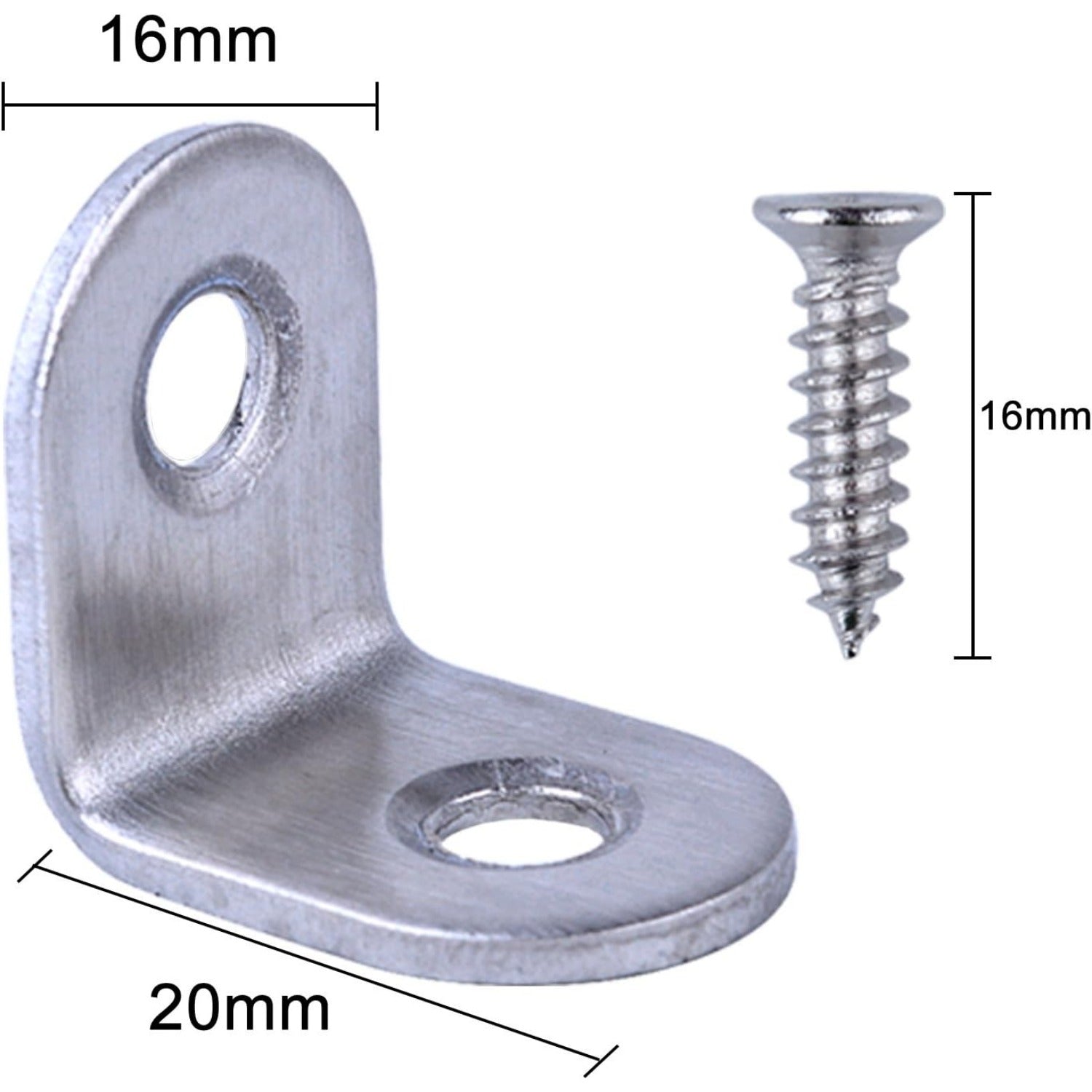 Bronagrand 10pcs 90 Degree Right Angle Brackets Fastener Stainless Steel Corner Braces with Screws (20x20mm)