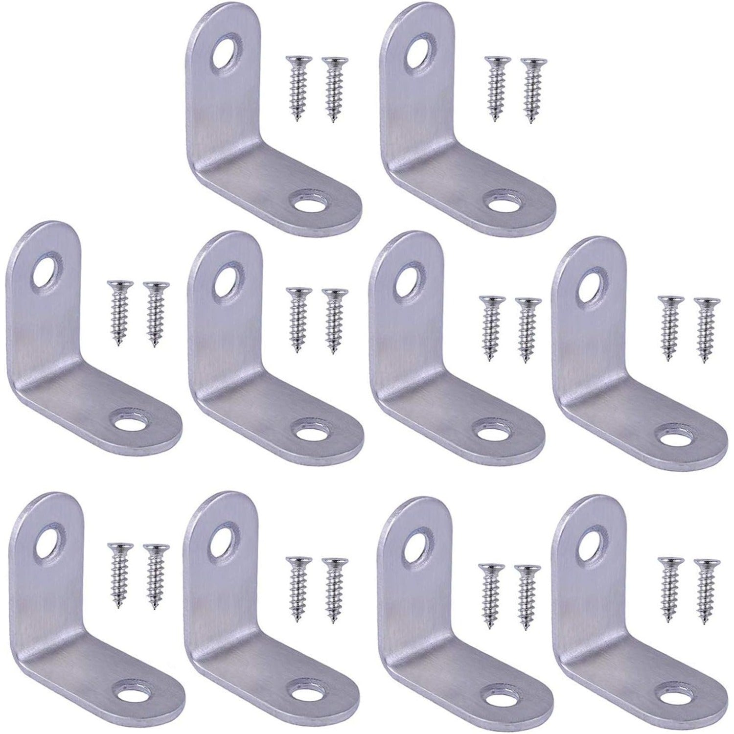 10pcs 90 Degree Right Angle Brackets Fastener Stainless Steel Corner Braces with Screws (30x30mm)