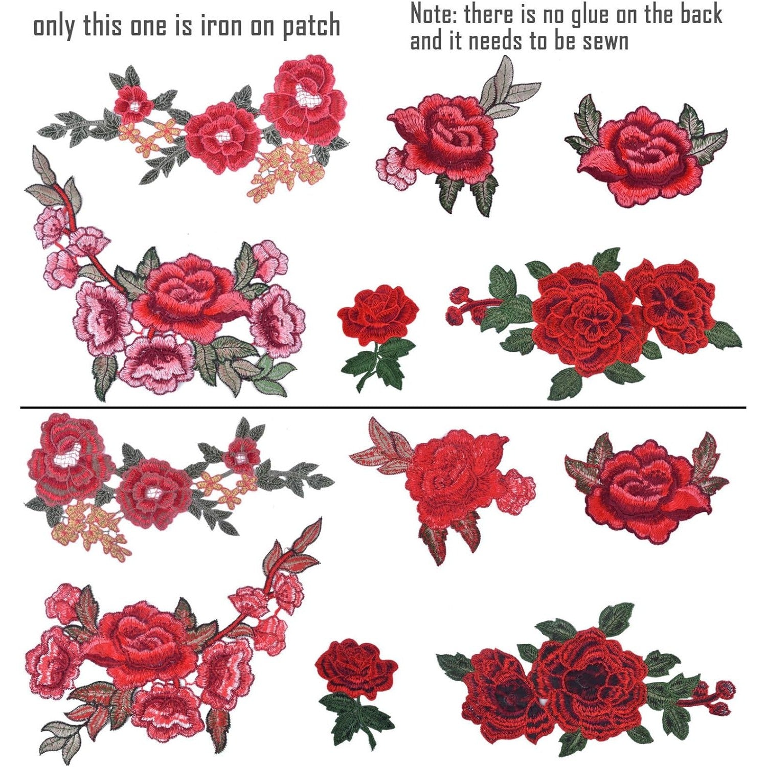 12 Pieces 6 Pairs Embroidered Patches Various Rose Flower Sew on Patch for DIY Art Craft,Clothings,Jeans
