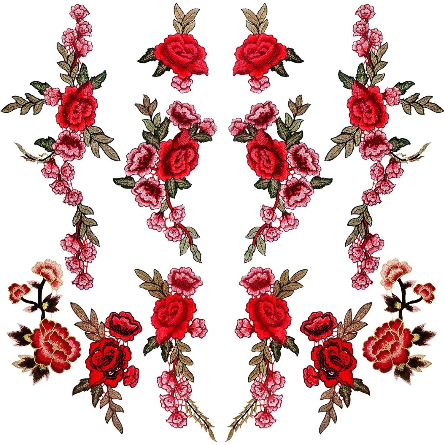 12 Pieces (6 Pairs) Iron On Flower Patches Clothing Patch Delicate Embroidered Flower Appliques for DIY T-Shirt Backpack Hoodies Shoes Bags Decoration, 6 Styles