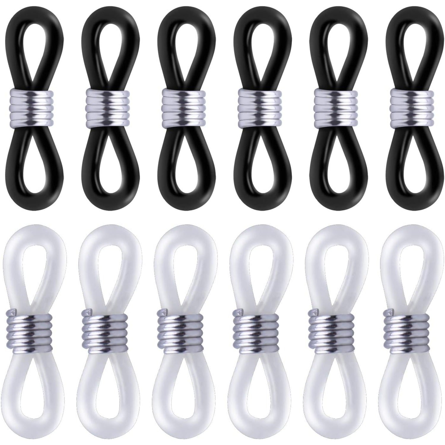 12pcs Rubber Metal Ends for Eyeglass Chain Necklace Chain (6pcs Black Color +6pcs Clear Color)