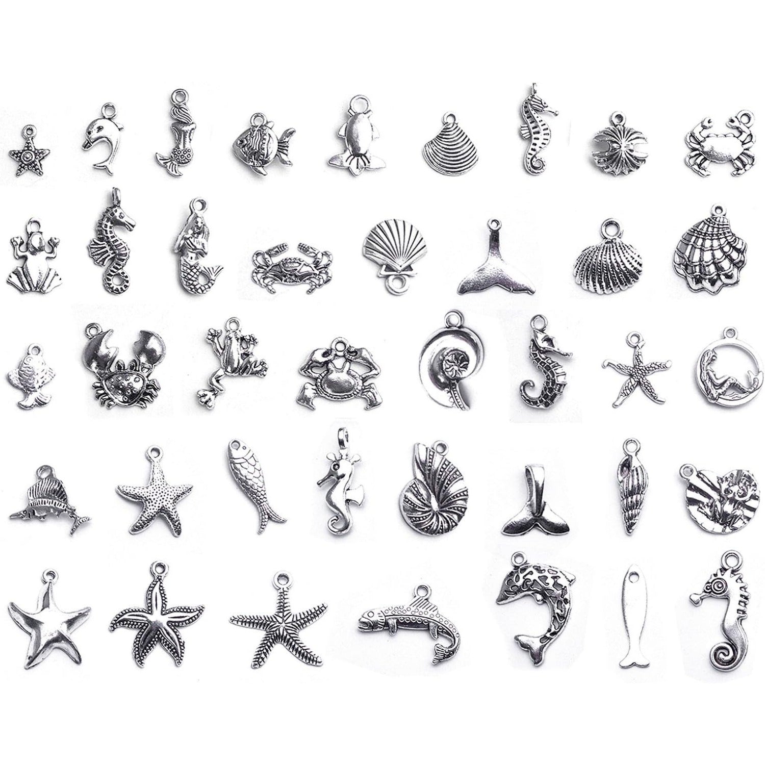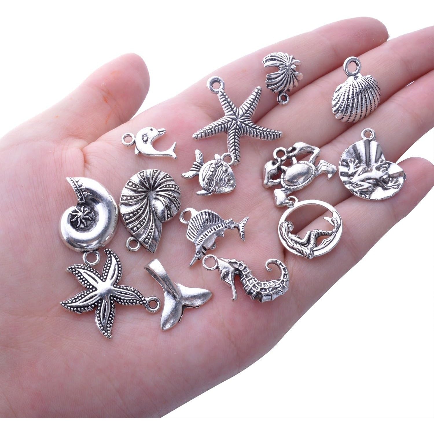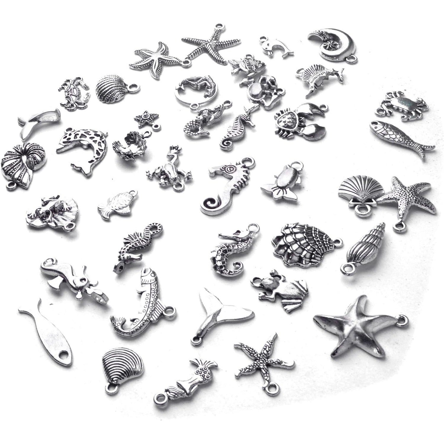 Sea charms:Length:approx. 1.2-2.5cm/0.47-0.98",Width:approx. 0.5-2.9cm/0.2-1.14",Hole Diameter: 2mm/0.079"(approx.)