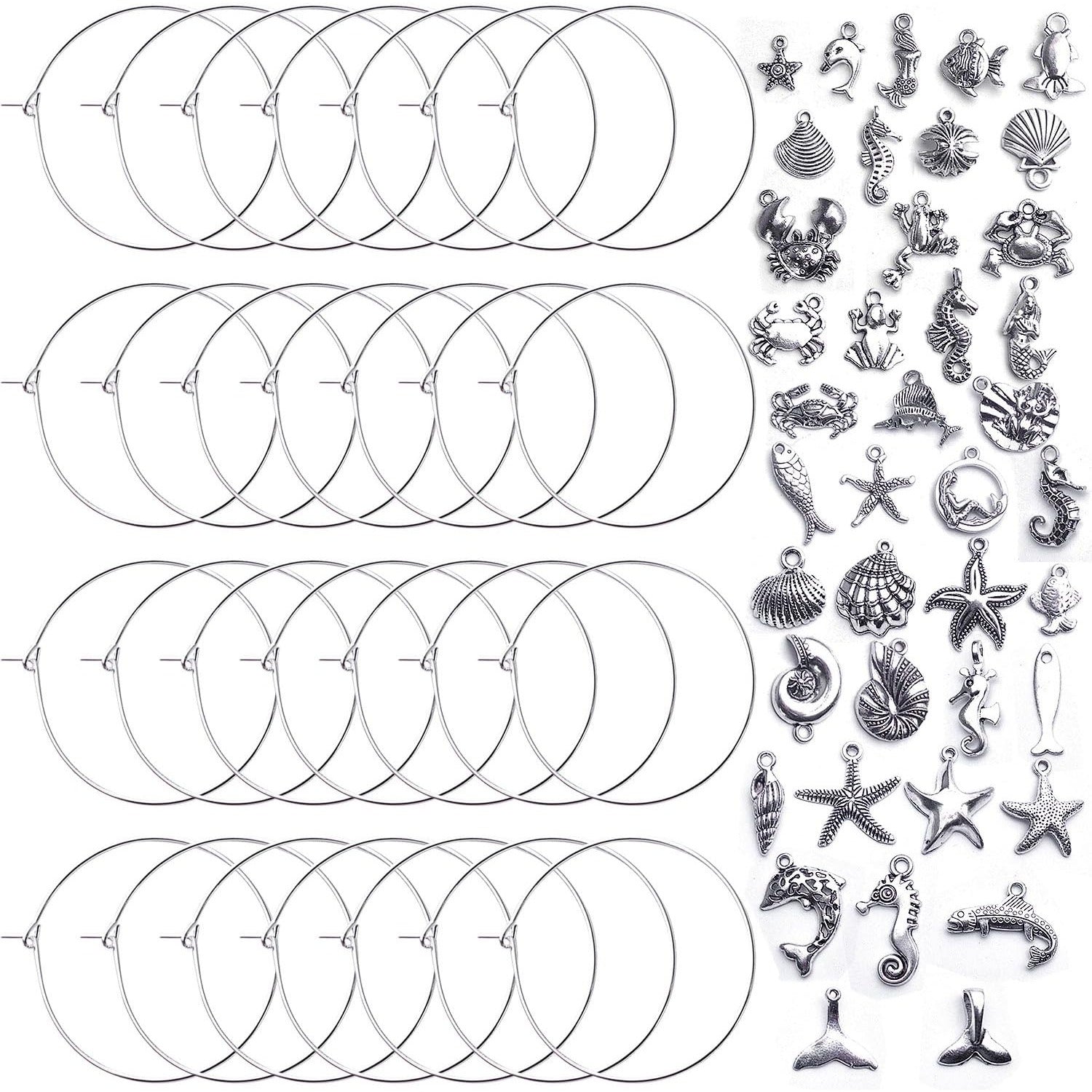 140Pcs Metal Wine Glass Charm Rings Earring Hoops and Ocean Fish & Sea Charms Pendants for DIY Your Unique Wine Glass Marker