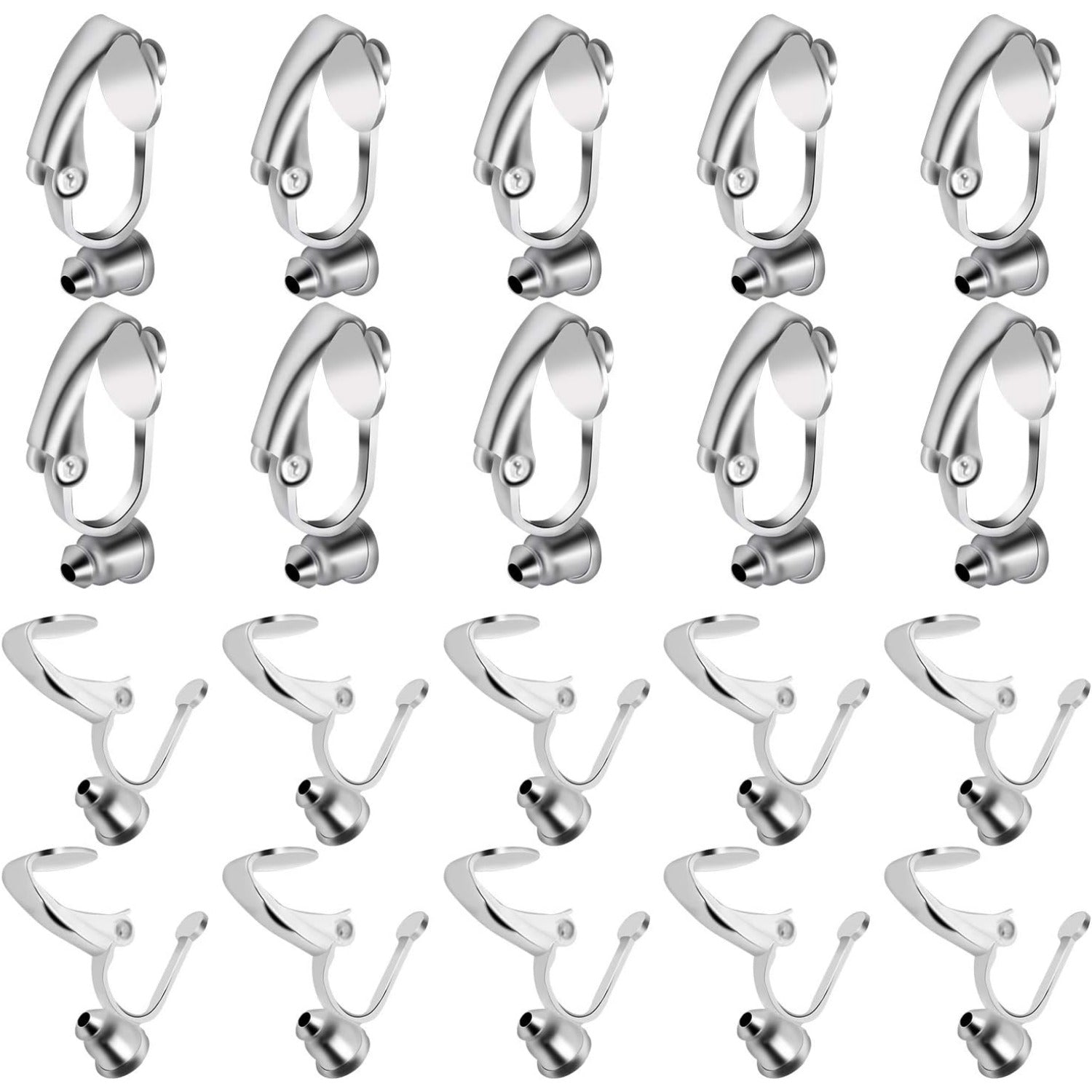 BronaGrand 20 Pieces Clip-on Earring Converter Components Findings with Post, Silver