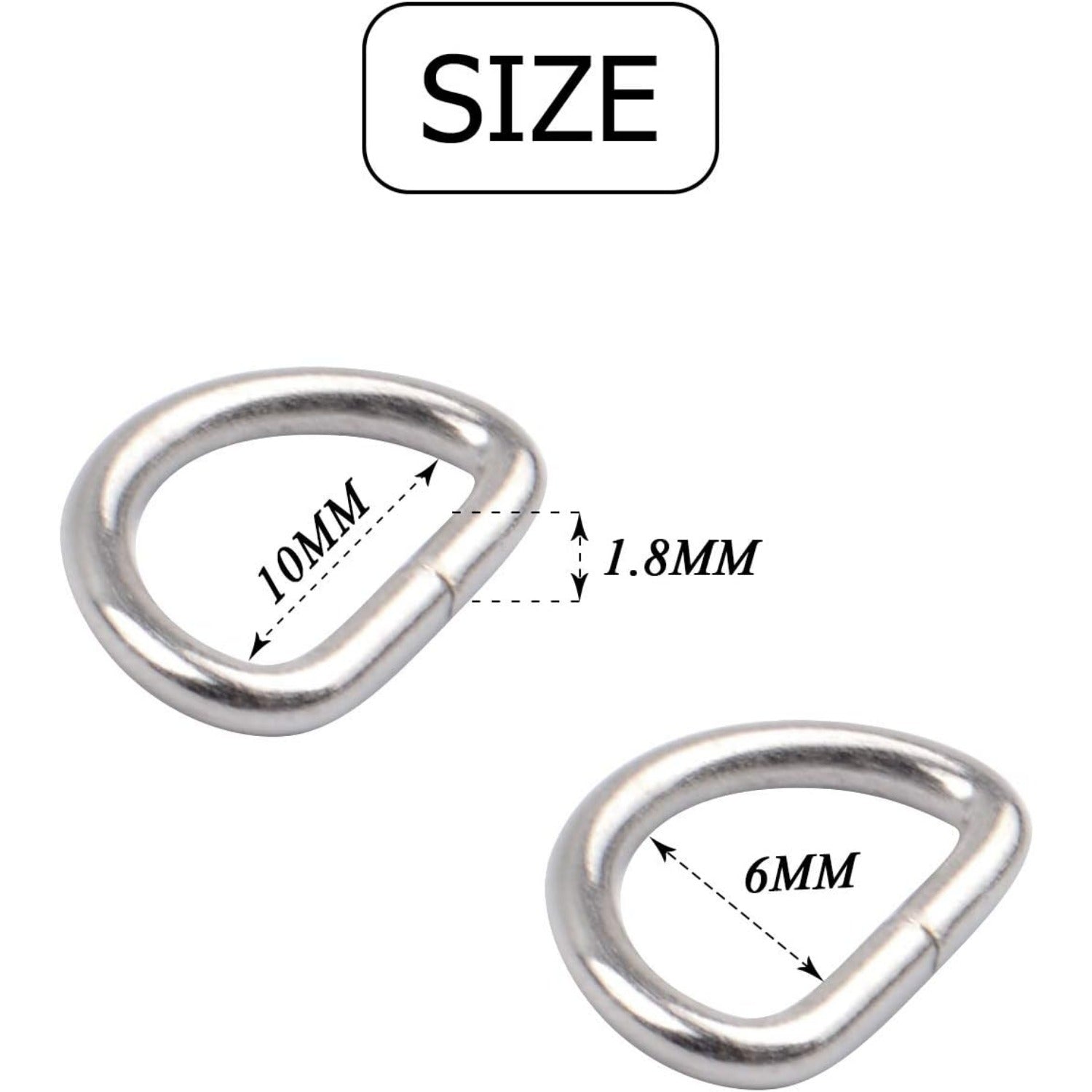 BronaGrand 200pcs 2/5 inch Metal D Ring Buckles D-Ring Loop for Handbag Purse Clothes DIY Accessories