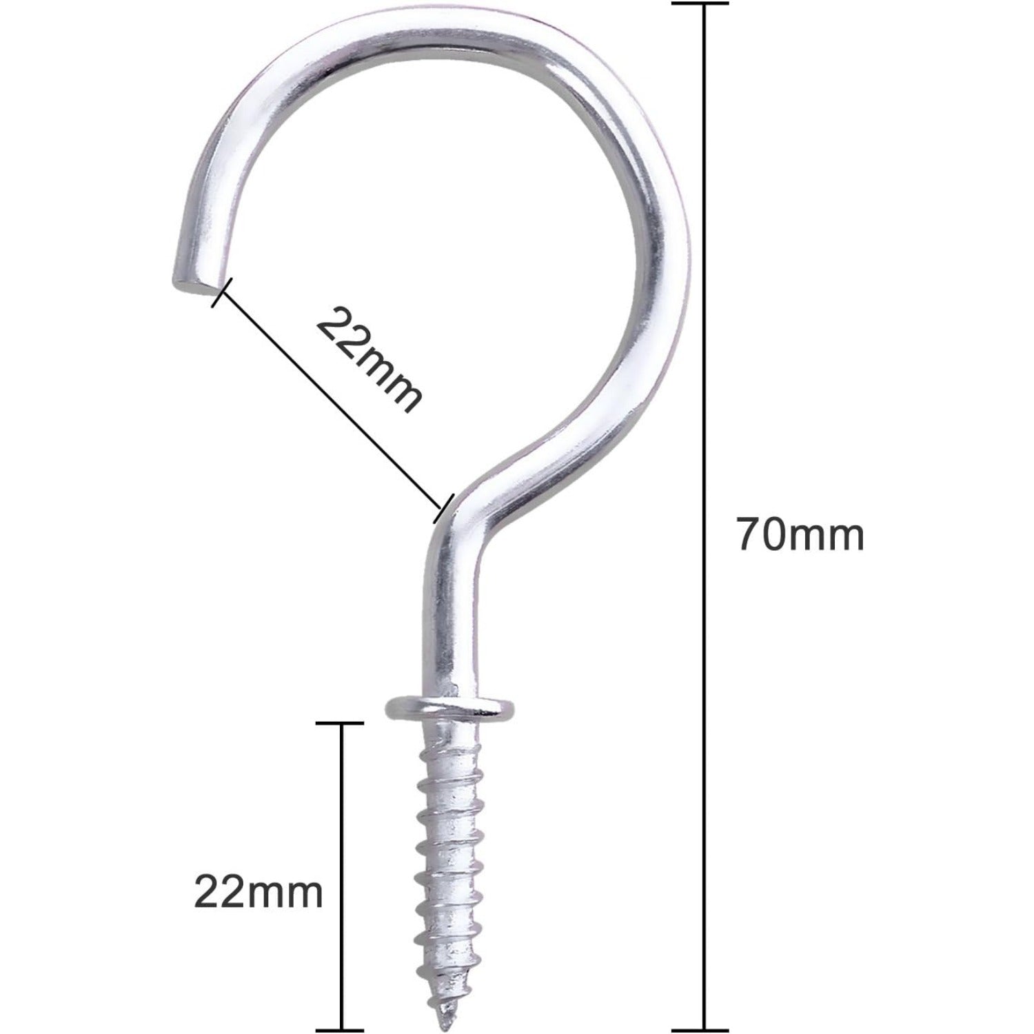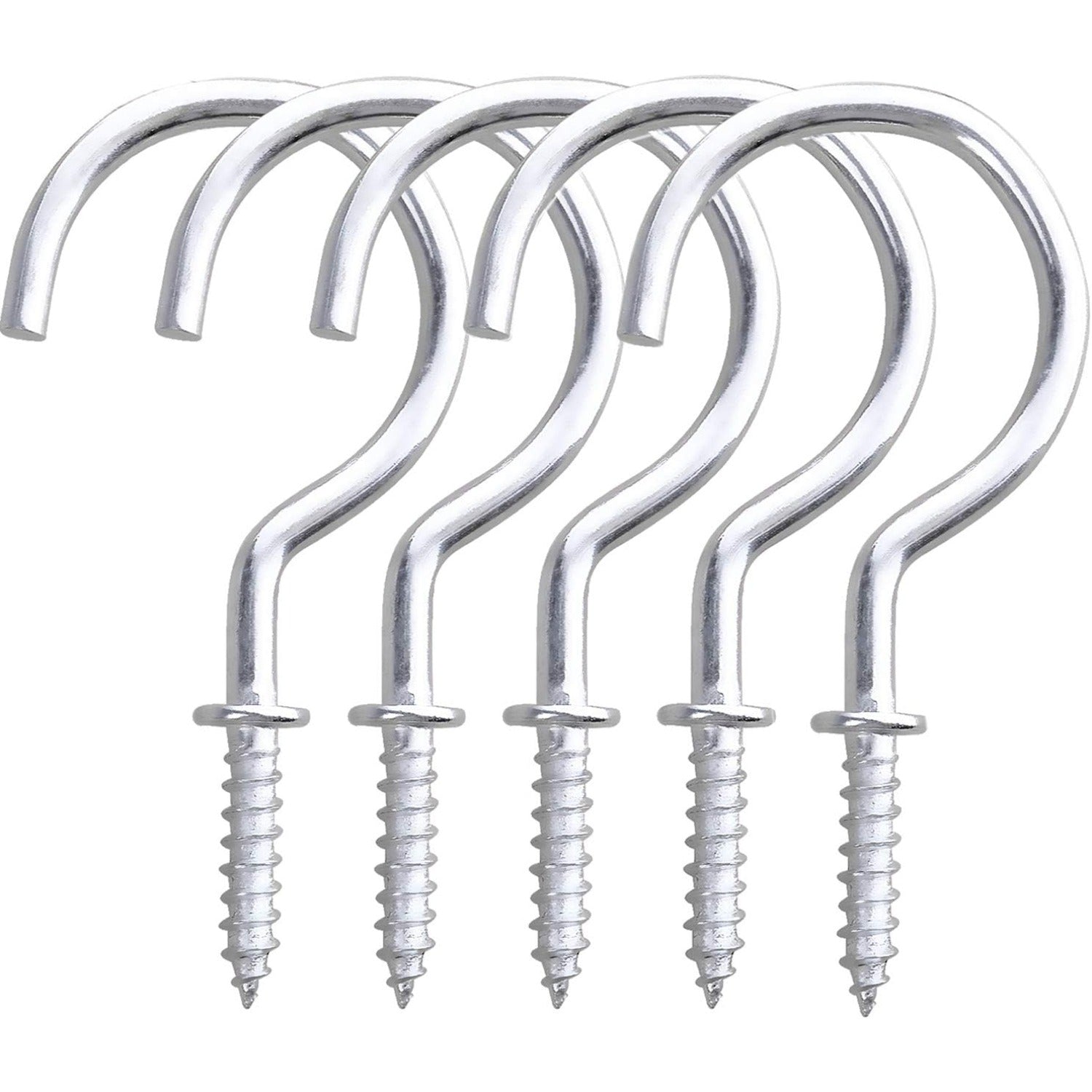 20Pcs 2.8 inches Silver Metal Cup Hooks Round End Ceiling Wall Hooks for Hanging Plants, Lights, Curtains, Kitchen Towels