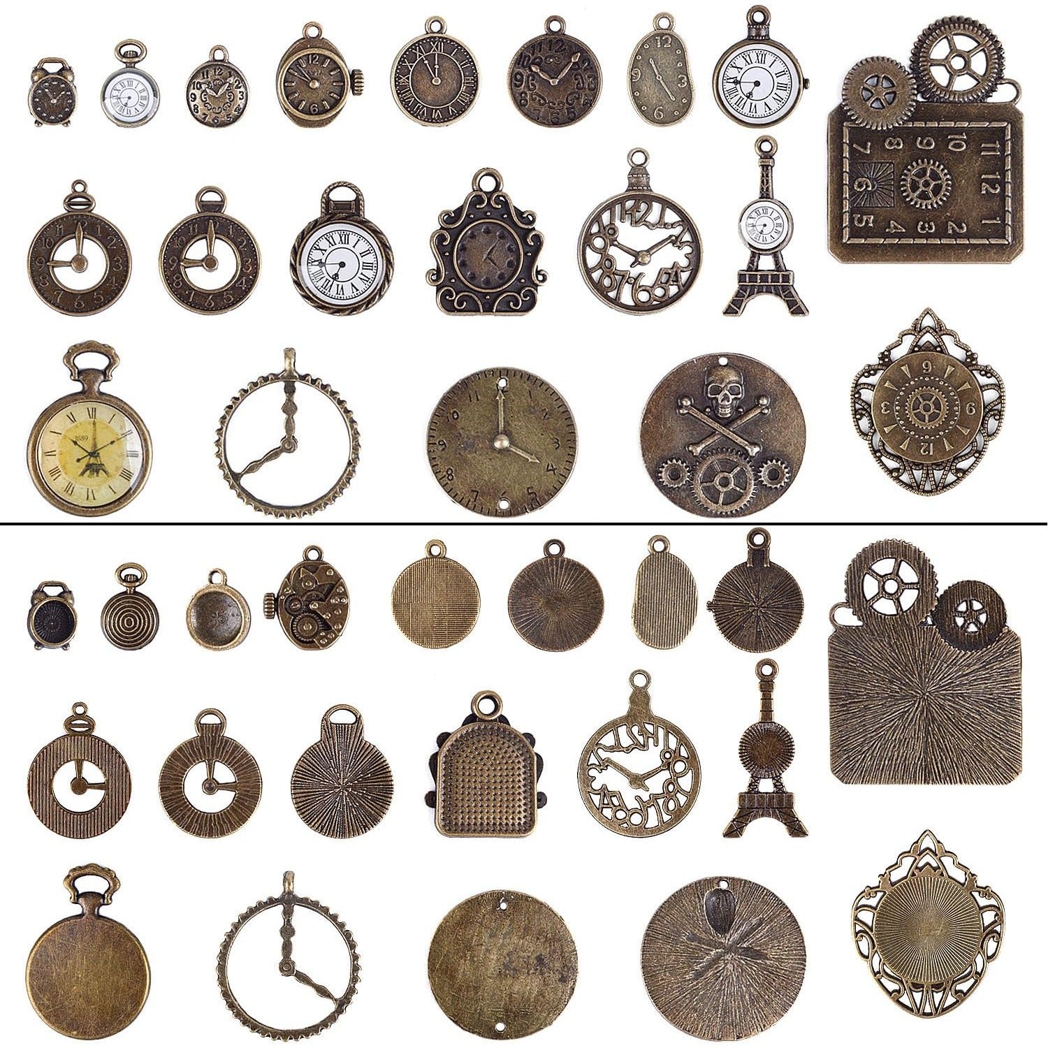 20pcs Mixed Antiqued Bronze Charms Clock Face Charm Pendant, DIY Crafts, Gears, Jewelry Making, Steampunk Pendants