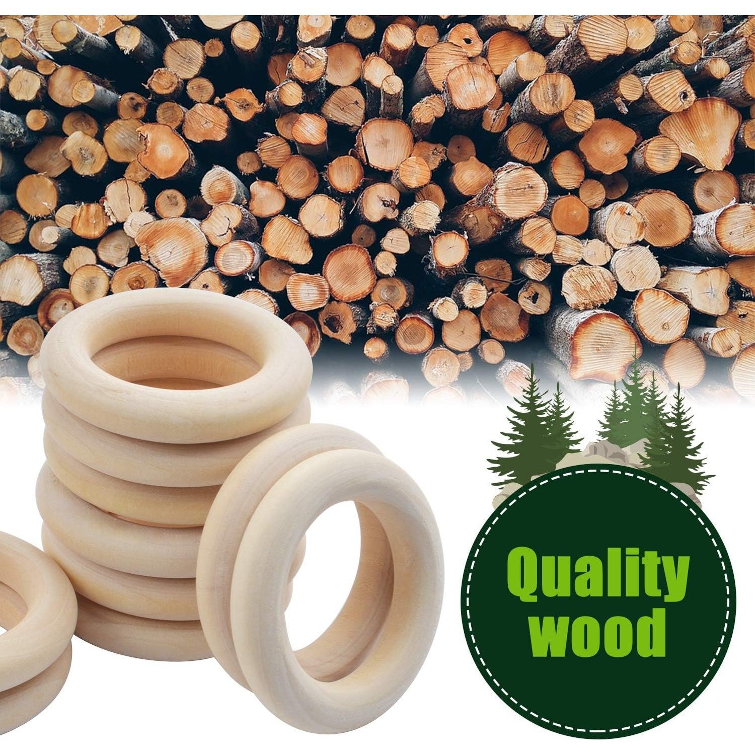 20Pcs Natural Wood Rings Wooden Hoop with 50Pcs Unfinished Wood Beads Wooden Loose Beads for DIY Pendant Connectors Jewelry Making Macrame Wall Hanging Craft