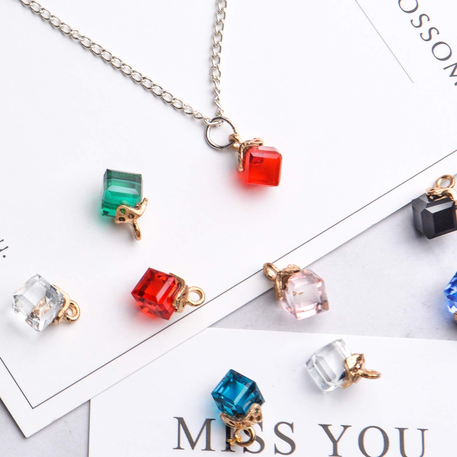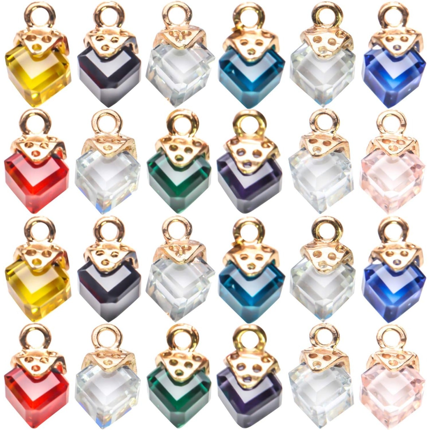 Crystal Charms,24 Pcs Cube Crystal Charms Bulk Rhinestone Pendants Handmade Bead Charms for DIY Jewelry Making Supplies, 12 Colors