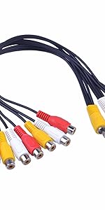 BronaGrand 3 RCA Male Jack to 6 RCA Female Plug Splitter Audio Video Av Adapter Cable 12inch