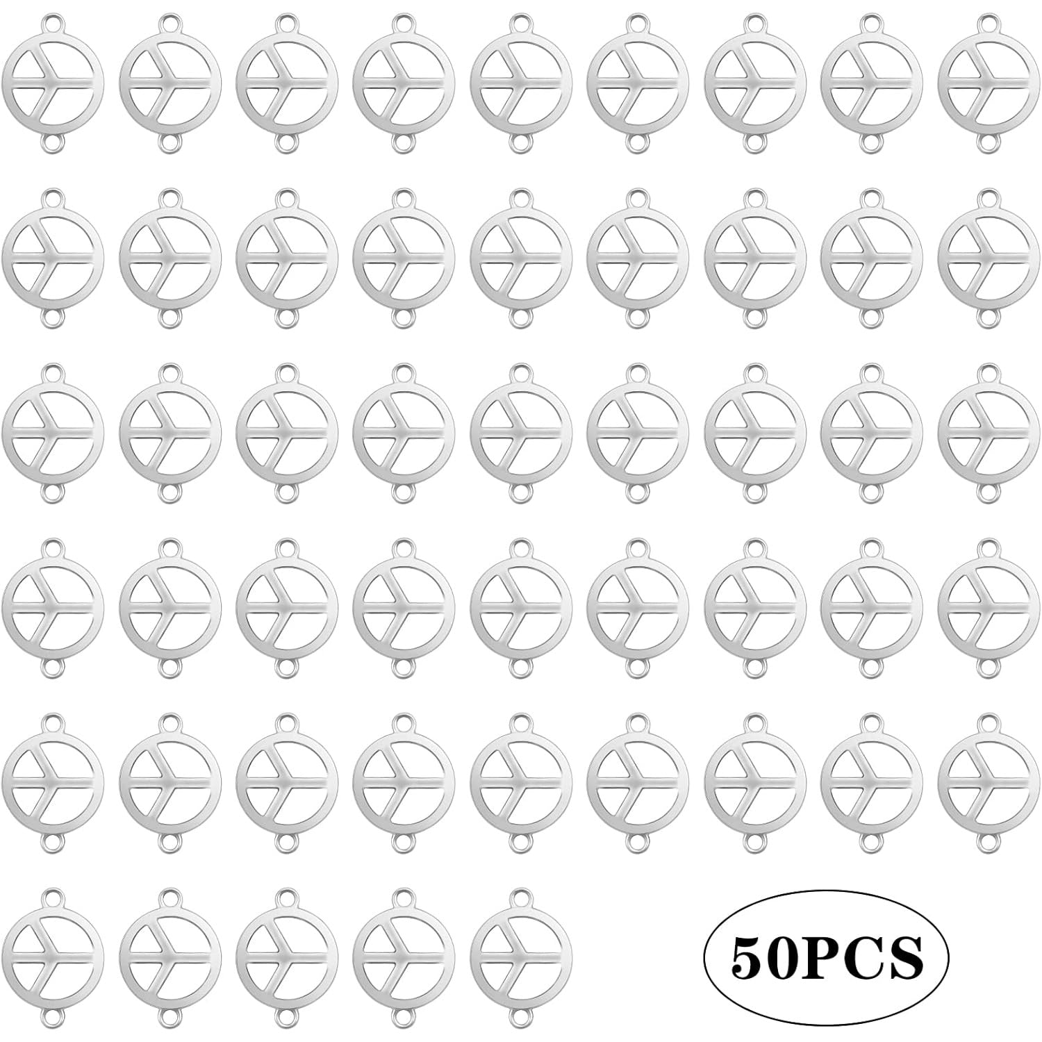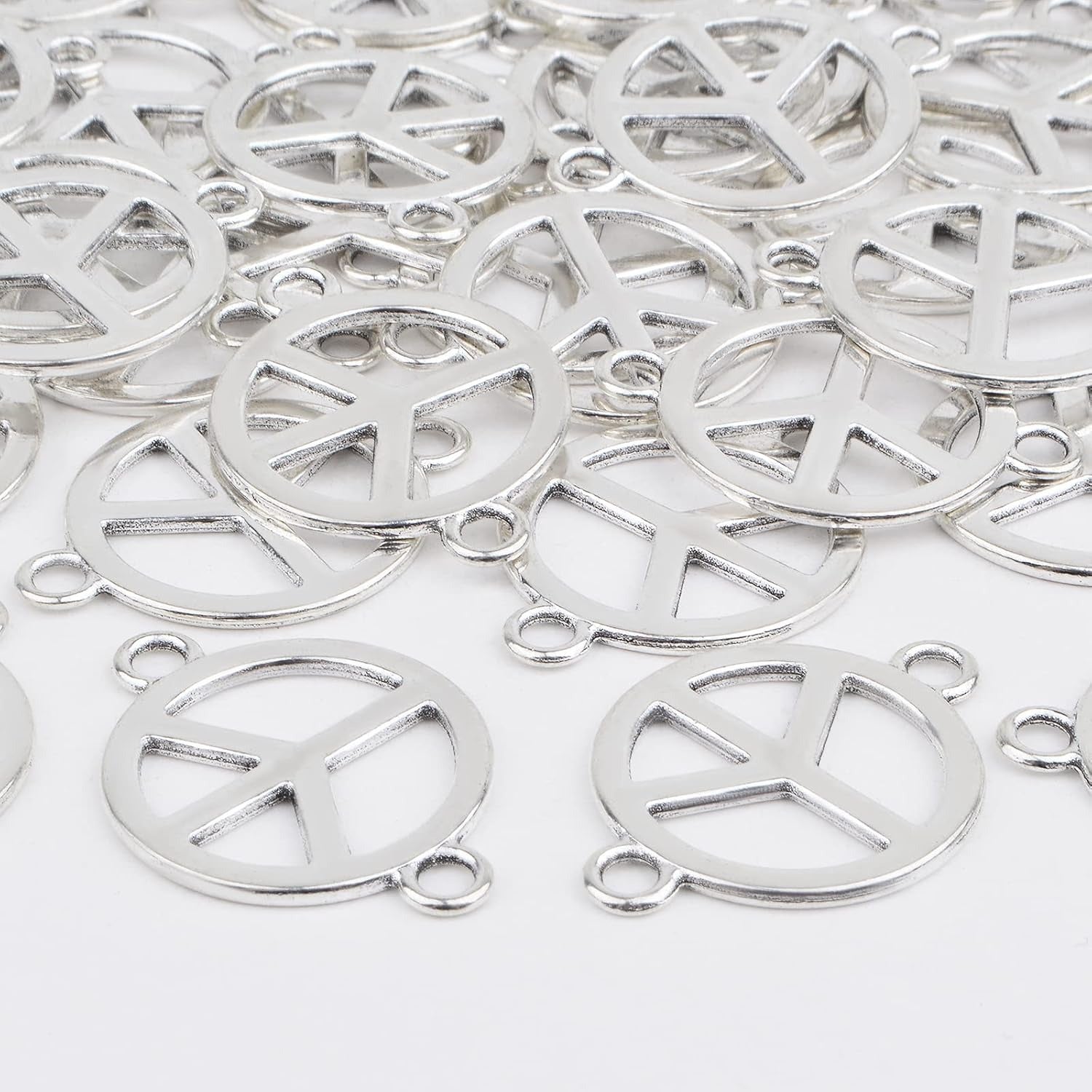 50 Pieces Antique Silver Peace Sign Charms Connectors Alloy Double-sided Peace Symbol Dangle Pendants Links for DIY Necklace Bracelet Jewelry Making Findings