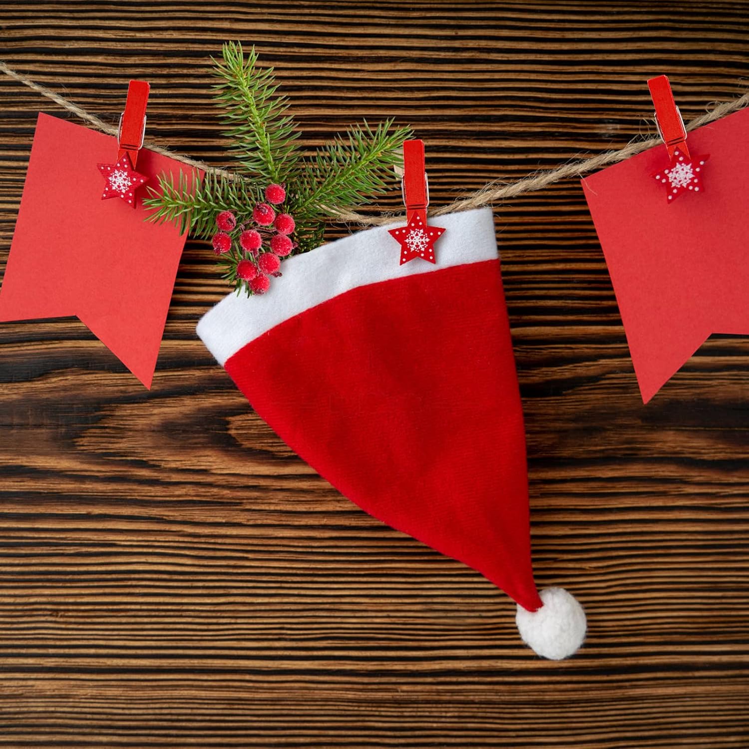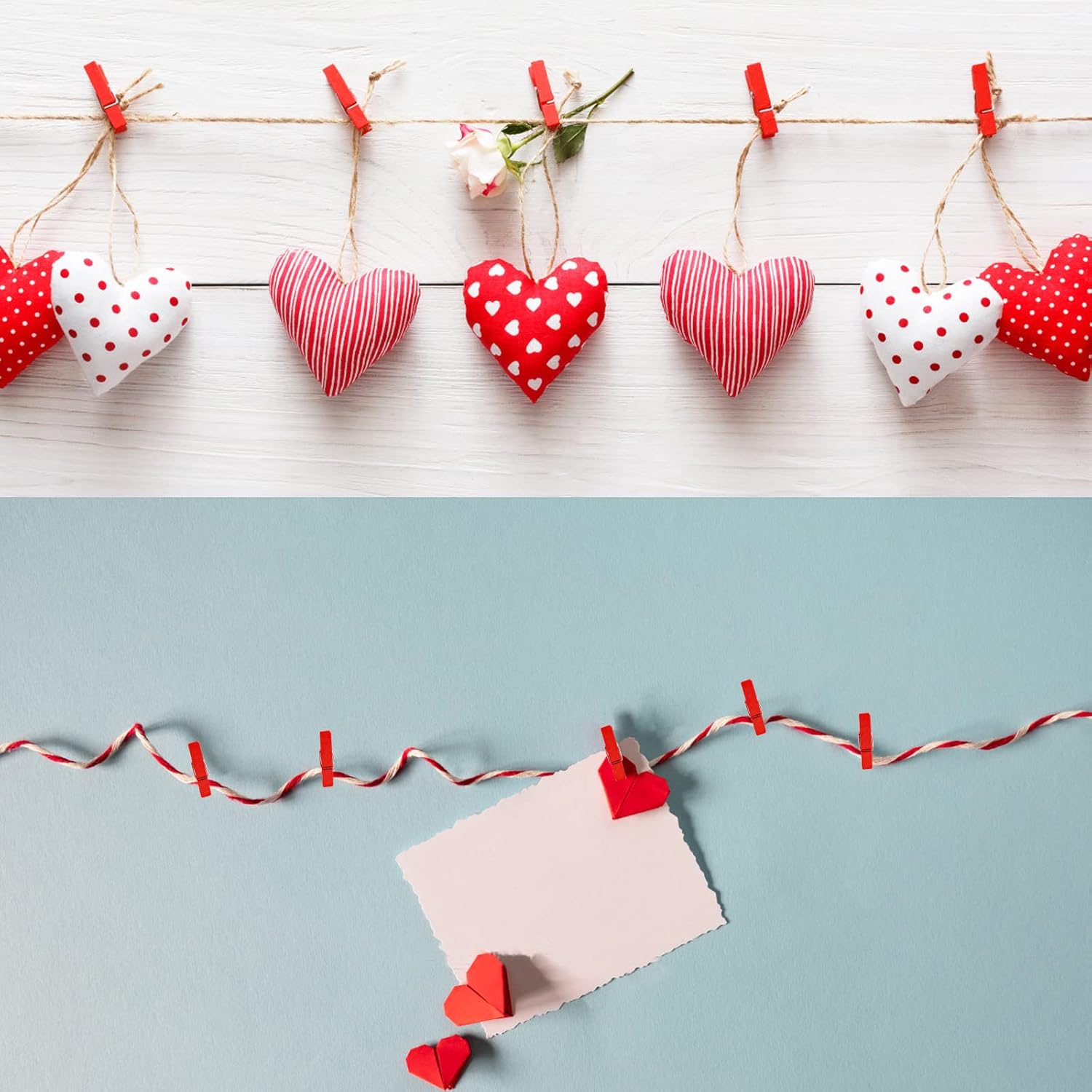 50 Pieces Red Wooden Clothespins Photo Paper Clips Mini Laundry Peg Pins with 50 Meters Twine for DIY Crafts Christmas Wedding Party Decoration
