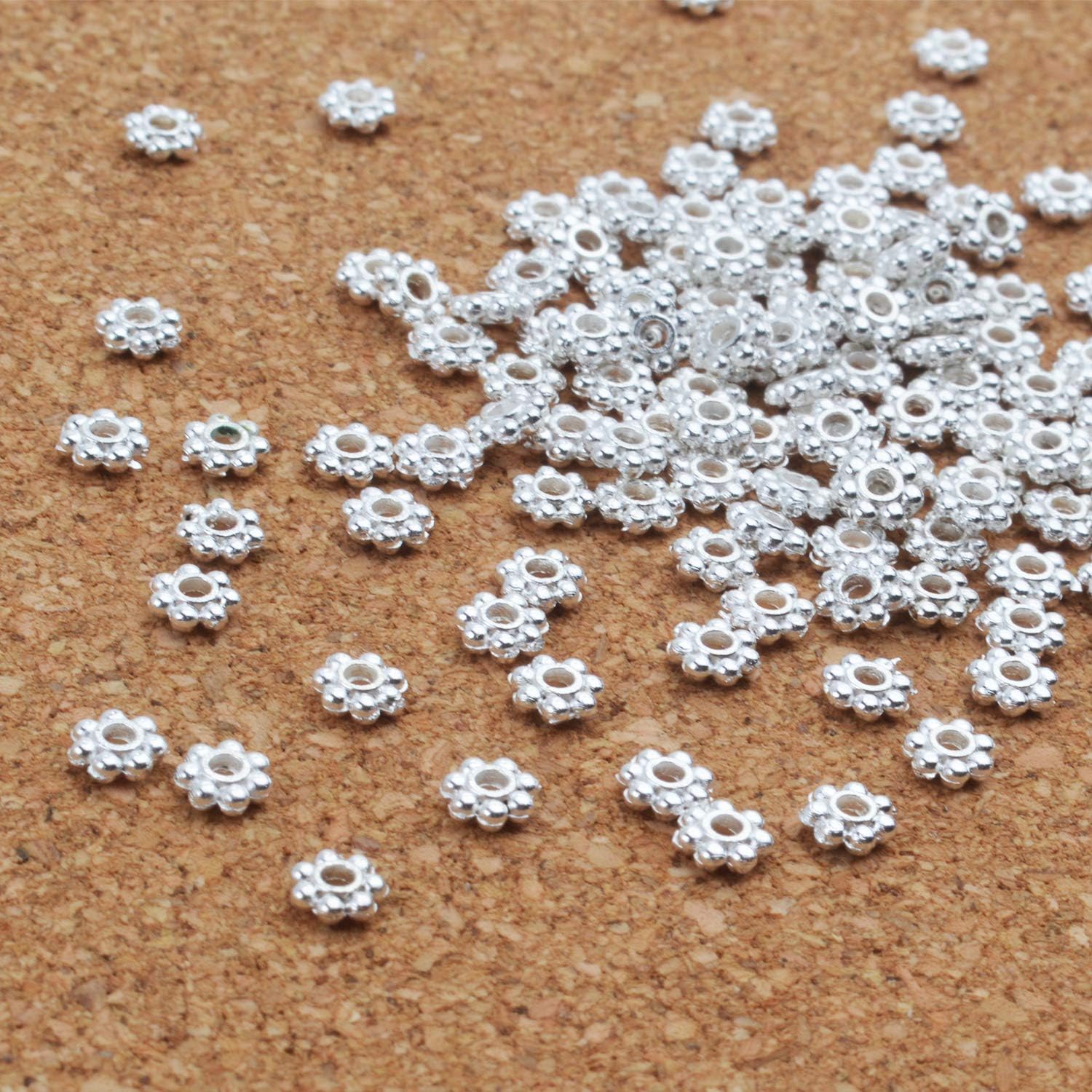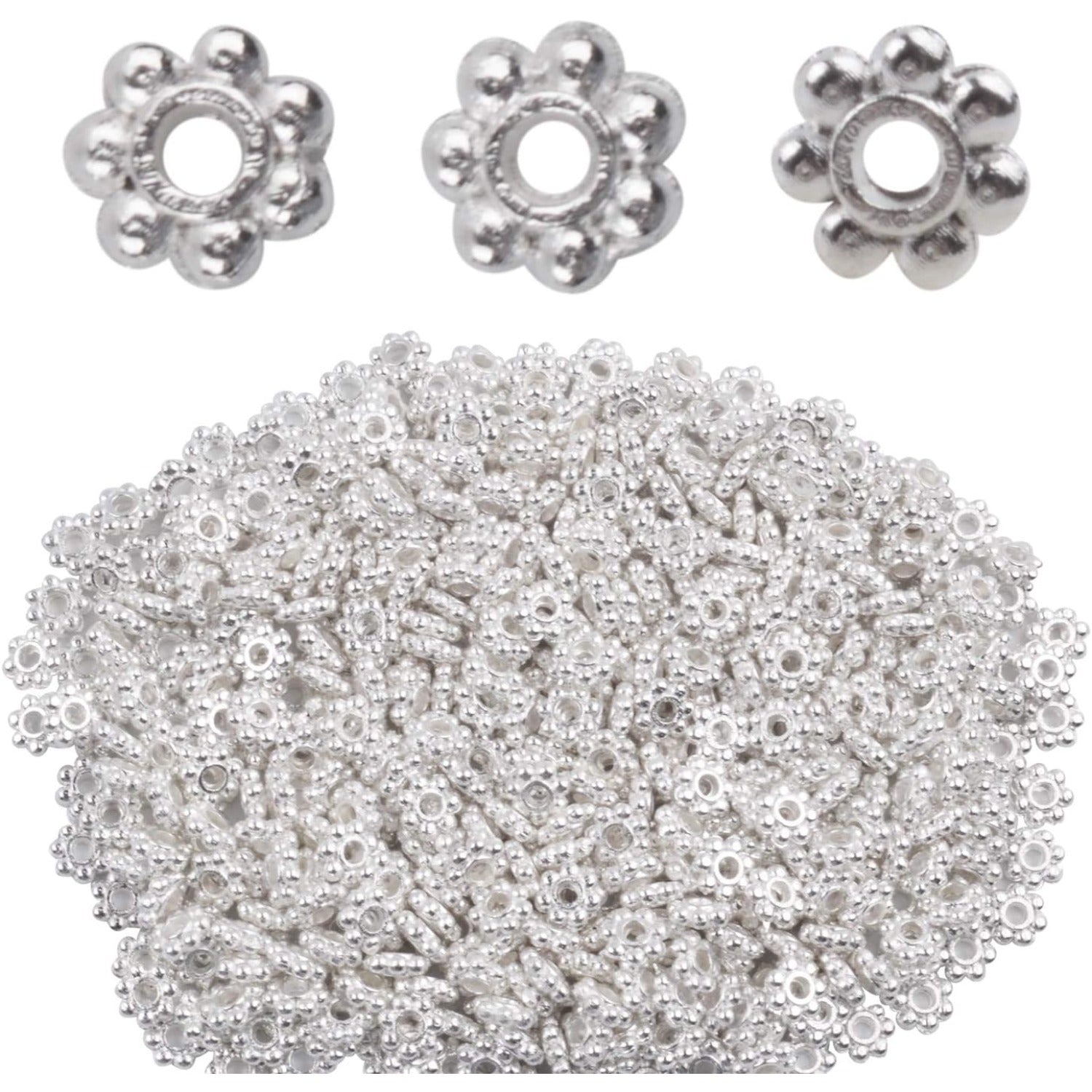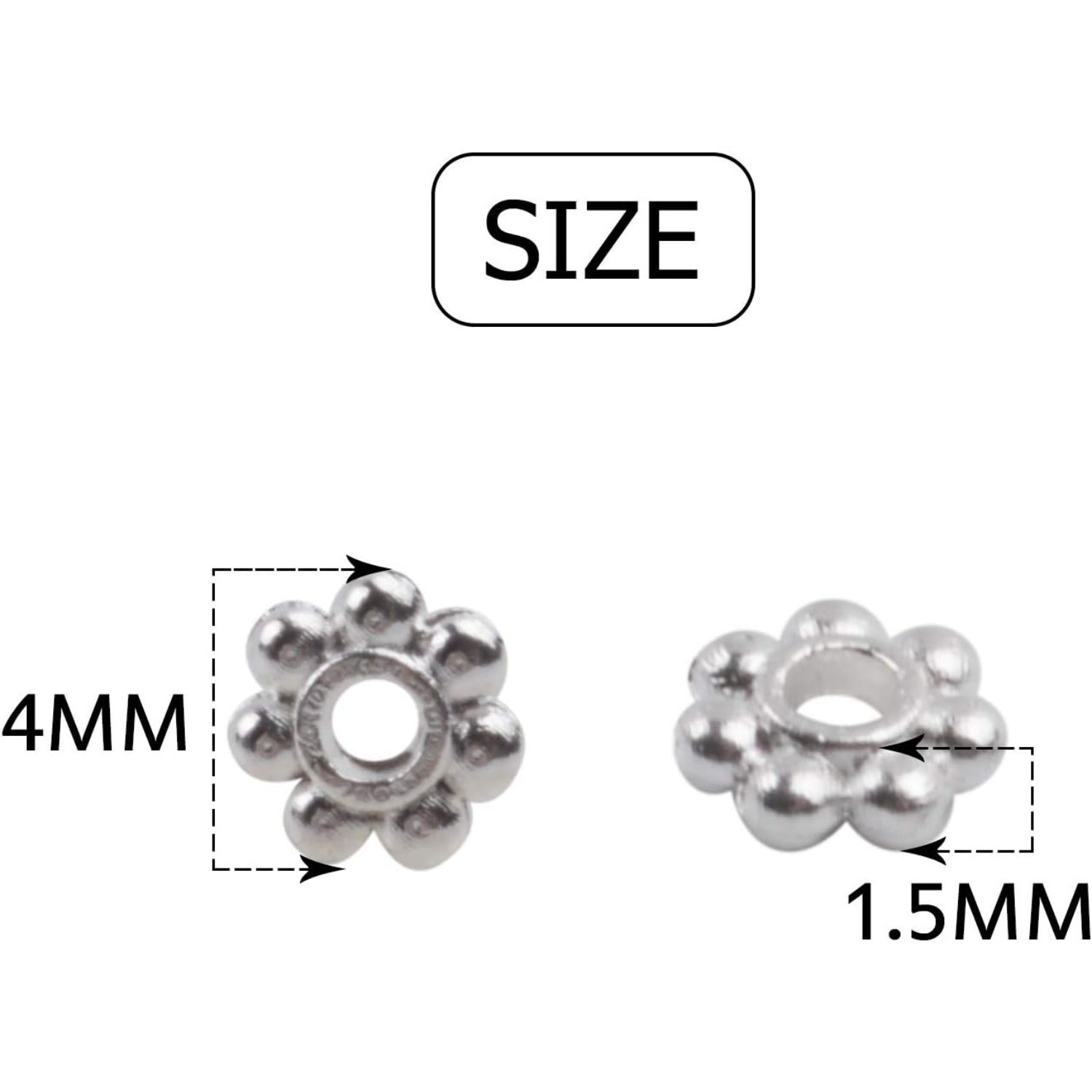 BronaGrand 500pcs Metal Daisy Spacer Beads 4mm for DIY Jewelry Making(Silver)