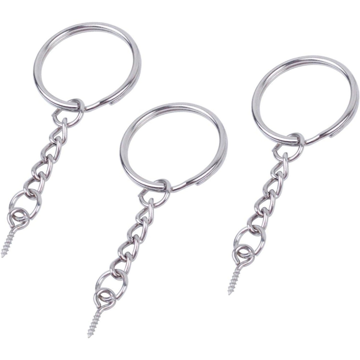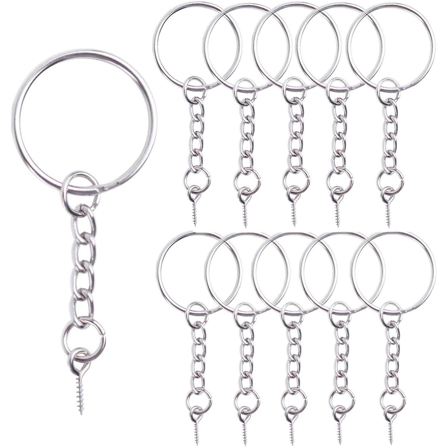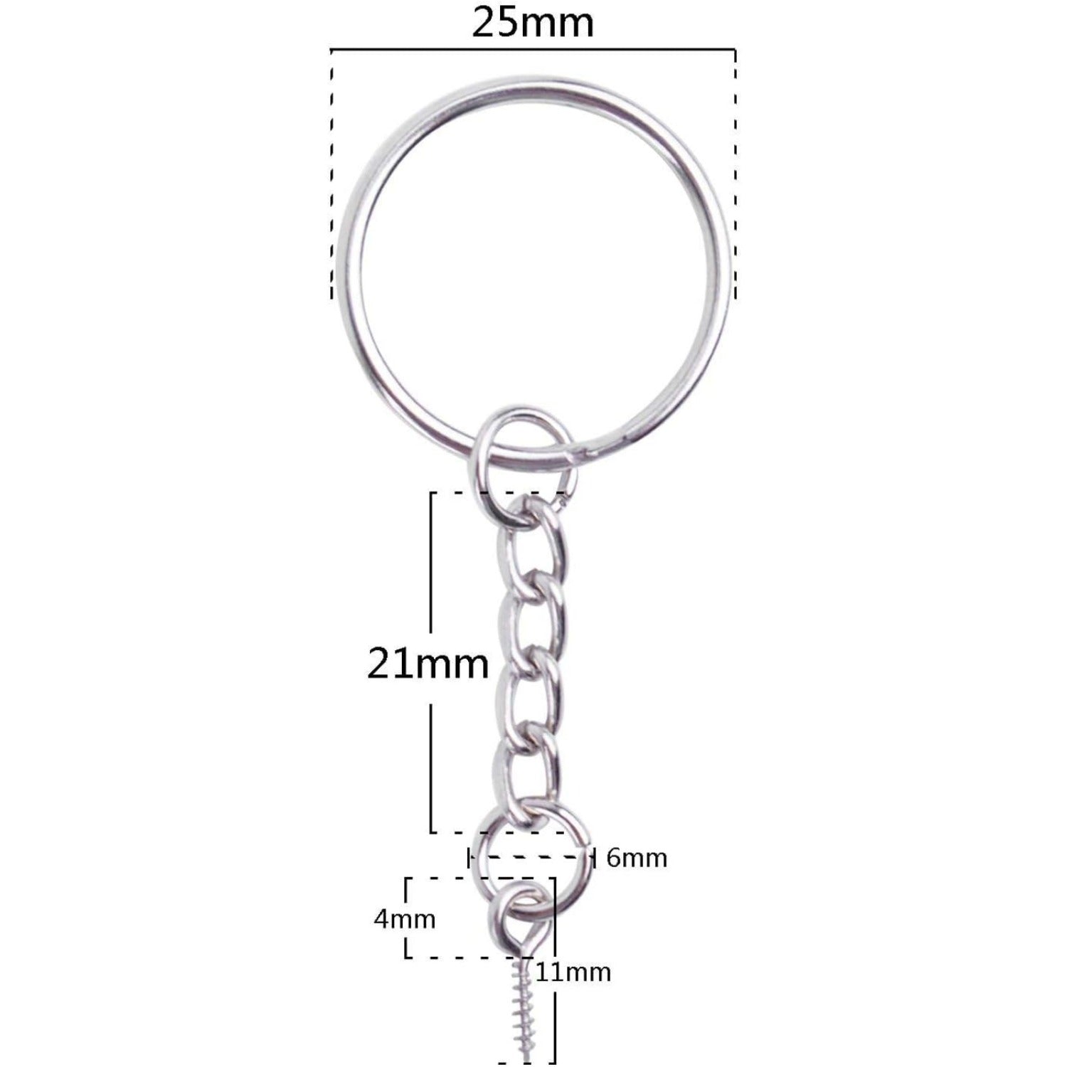 BronaGrand 50pcs 25mm Split Key Ring with Extend Chain and 12mm Screw Eye Pin for Craft Charm Making
