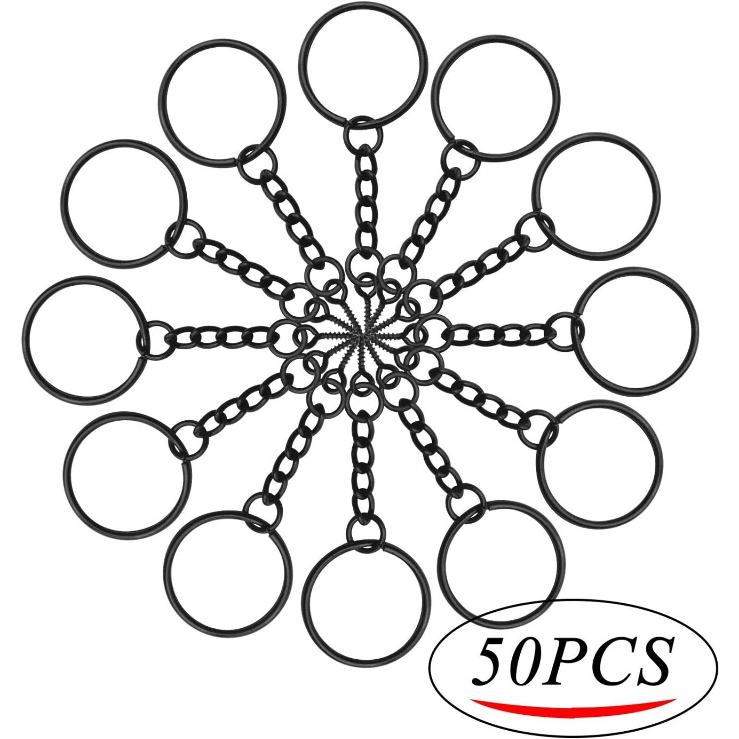 BronaGrand 50pcs 25mm Split Key Ring with Extend Chain and 12mm Screw Eye Pin for Craft Charm Making,Black