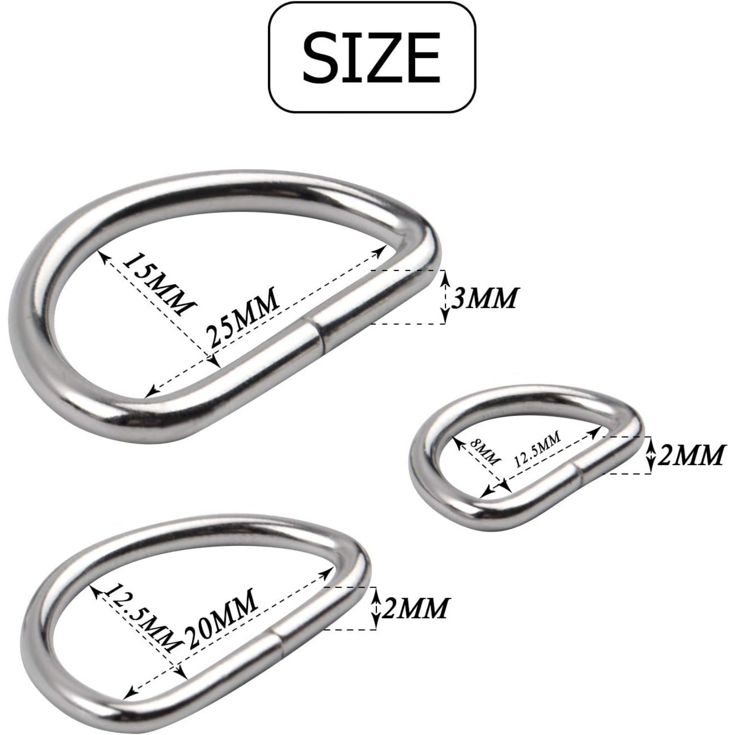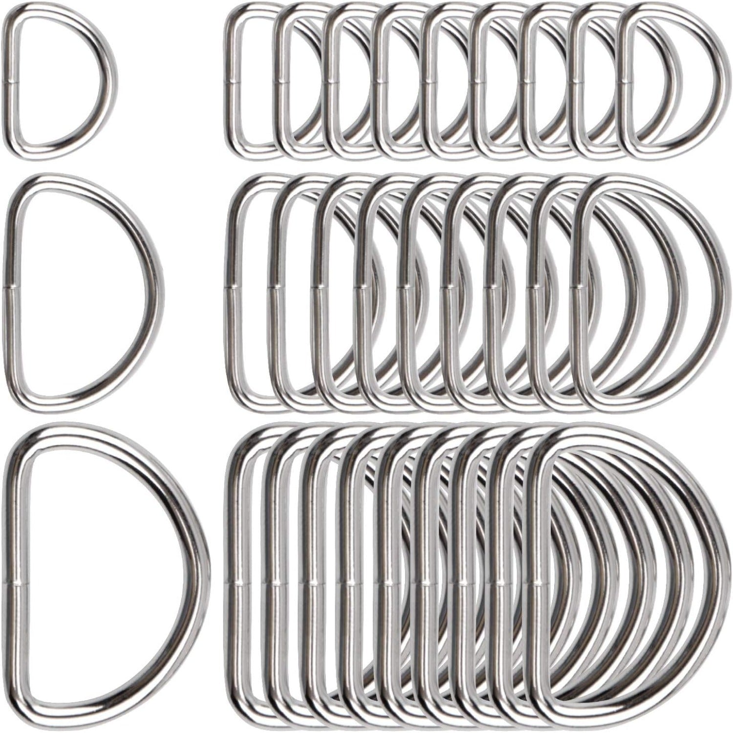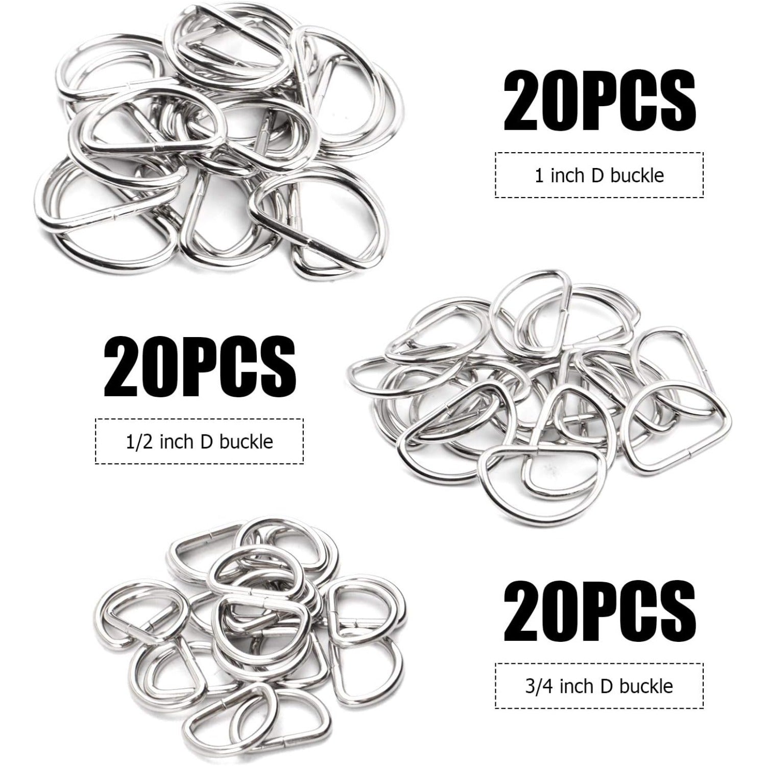 60pcs Assorted Multi-Purpose Metal D Ring Semi-Circular D Ring for Hardware Bags Ring Hand DIY Accessories - 1/2 Inch, 3/4 Inch, 1 Inch