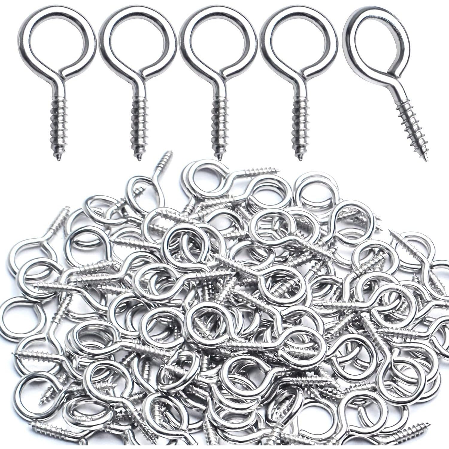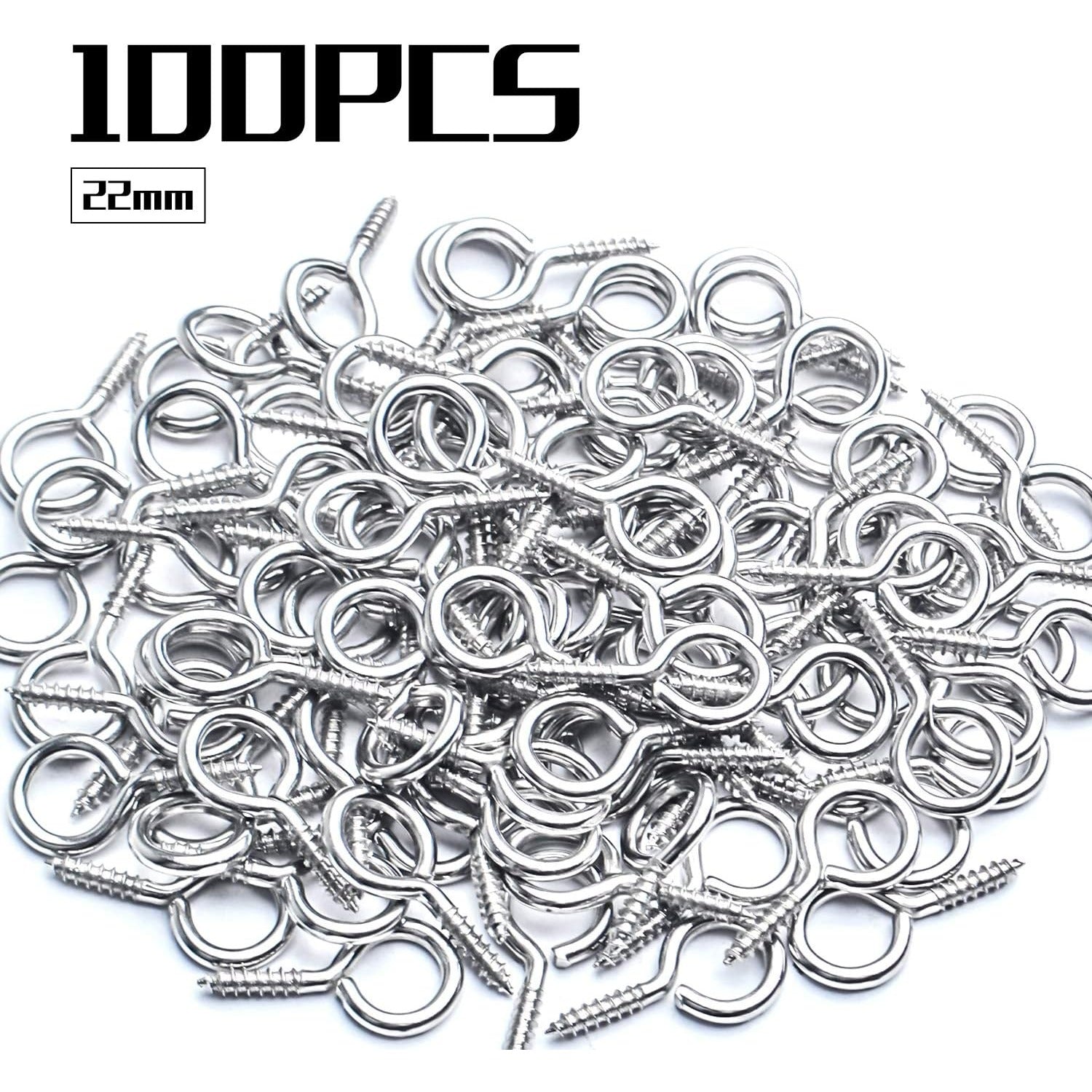 Eye Pin Screws, 100pcs Silver Small Screws Eyes Metal Eye Hooks Screws Eyes Lag Thread Eyebolt Small Eye Pin Screws for DIY Crafts Jewelry Findings Arts Projects, 22x11mm