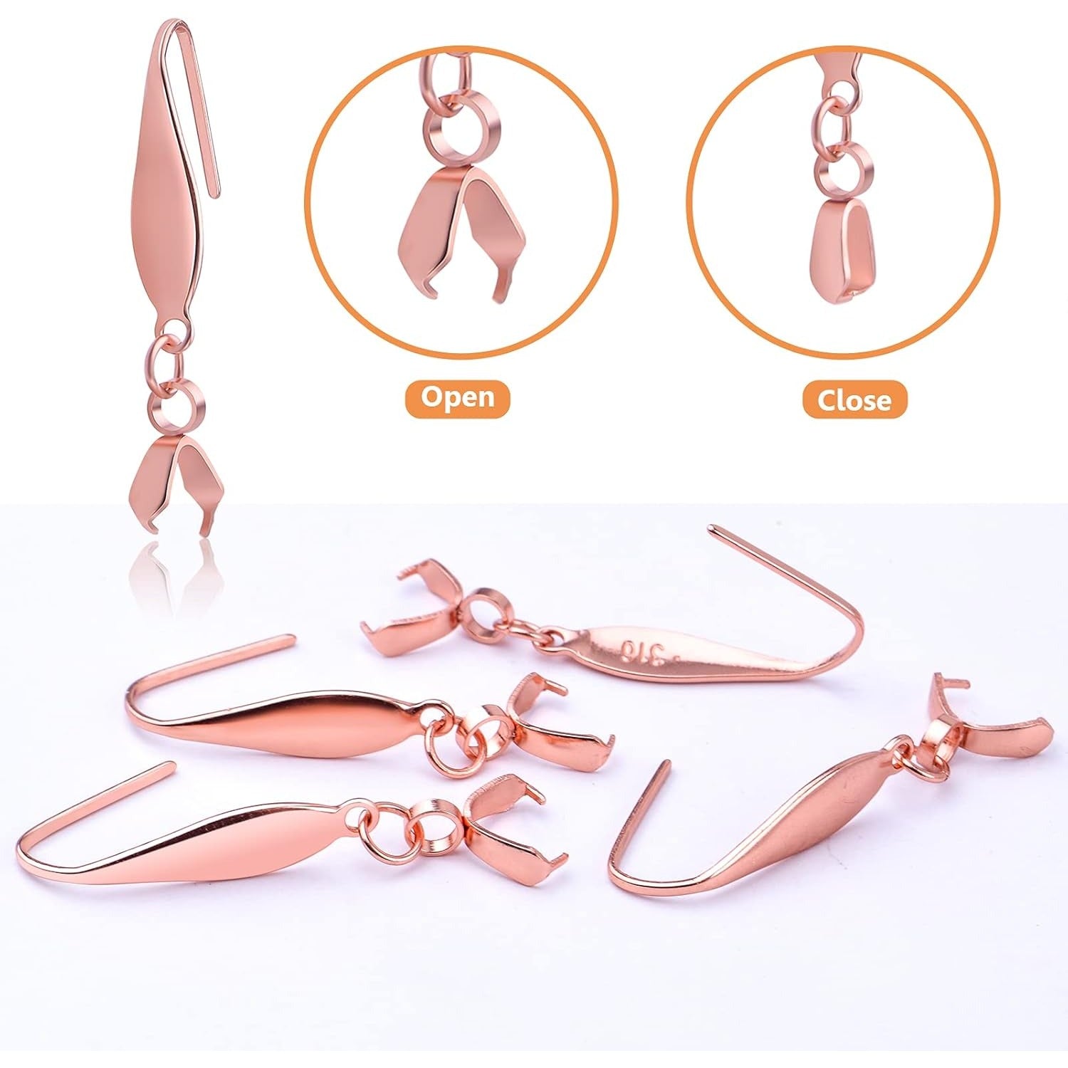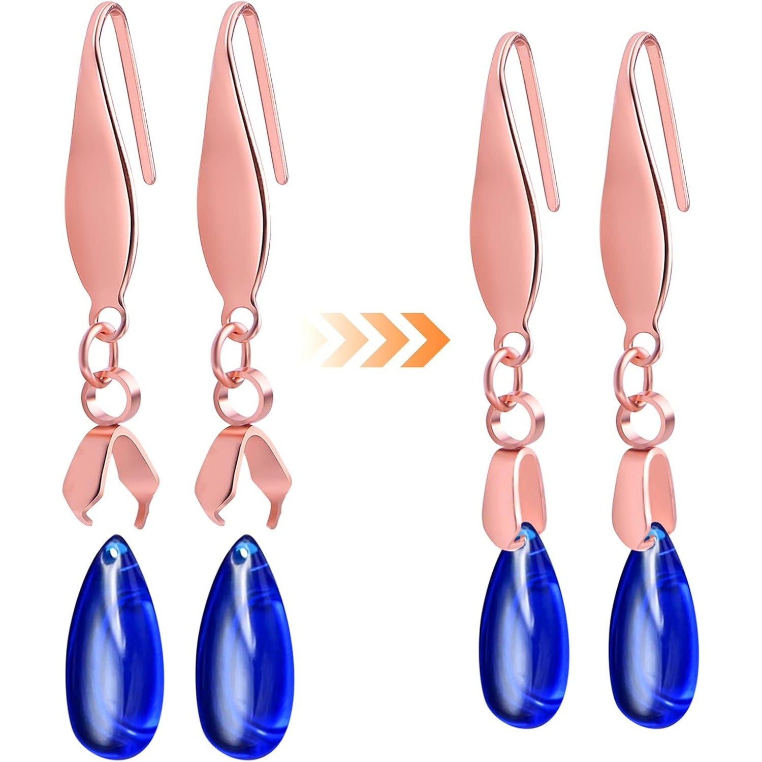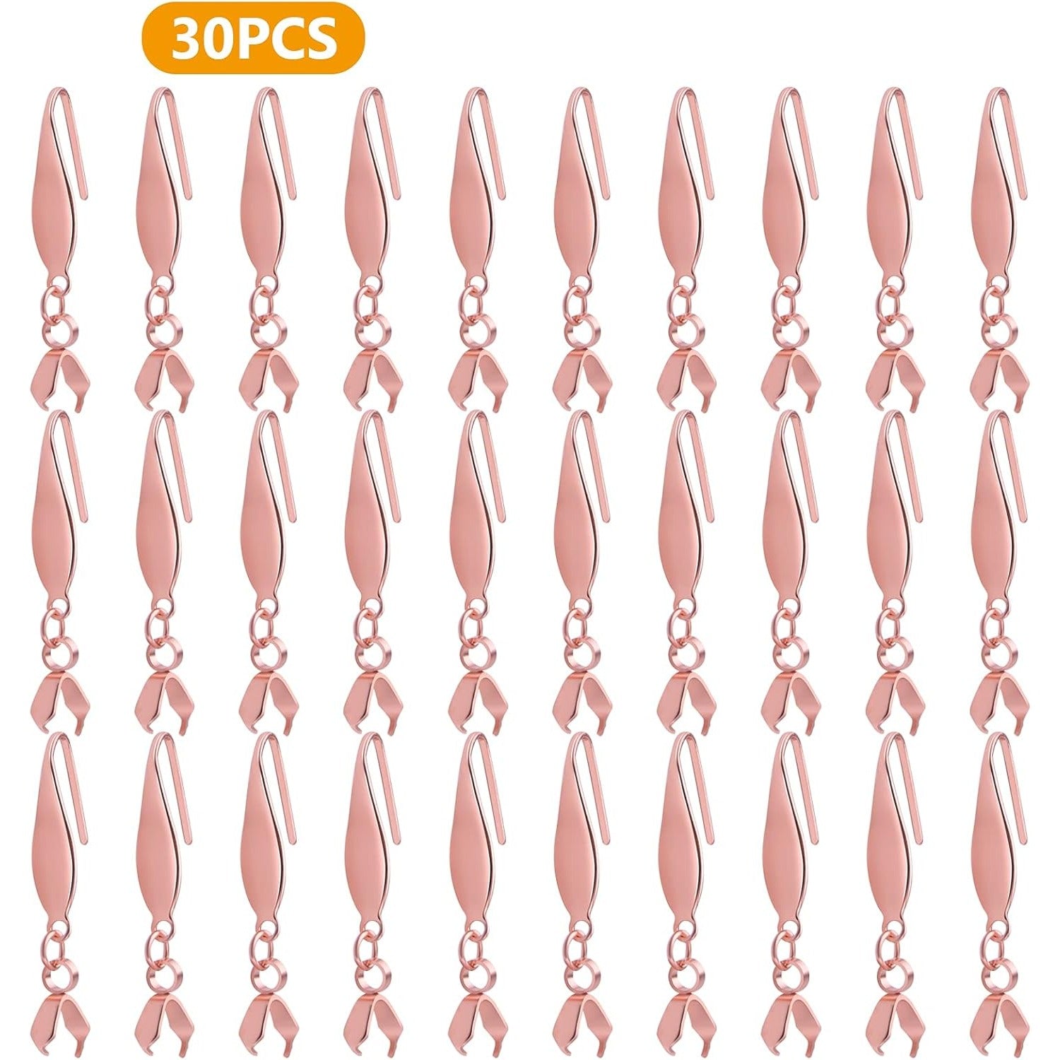 Stainless Steel Earring Hooks, 30pcs Pendant Clasp Earring Hooks Ear Wire Buckle Fish Hooks Dangle Earrings Connectors for Women Girls DIY Jewelry Making Supplies, Rose Gold