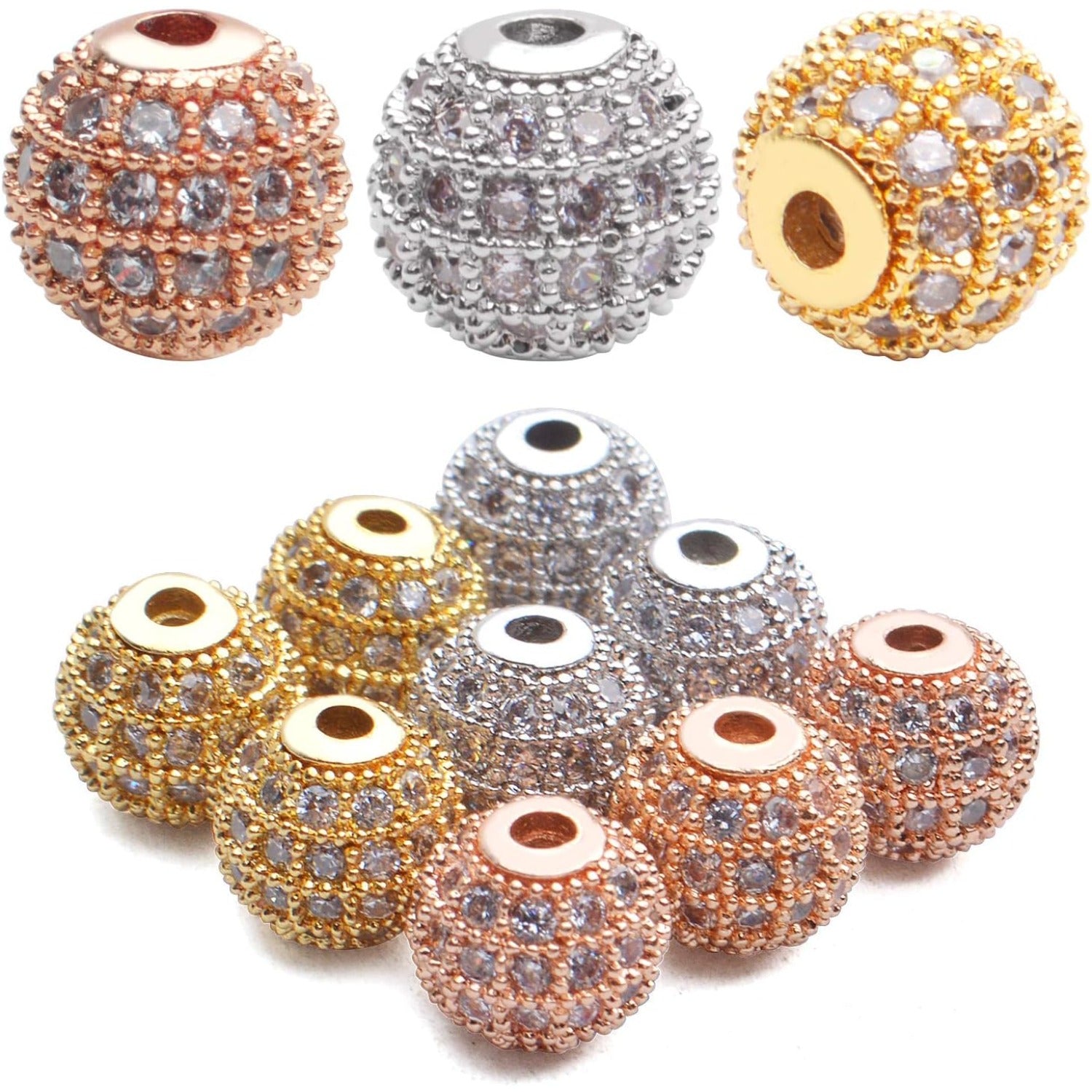 Cubic Zirconia Beads,9Pcs Micro Pave Disco Ball Beads Round Spacer Beads Bracelet Connector Charms Beads for Jewelry Making