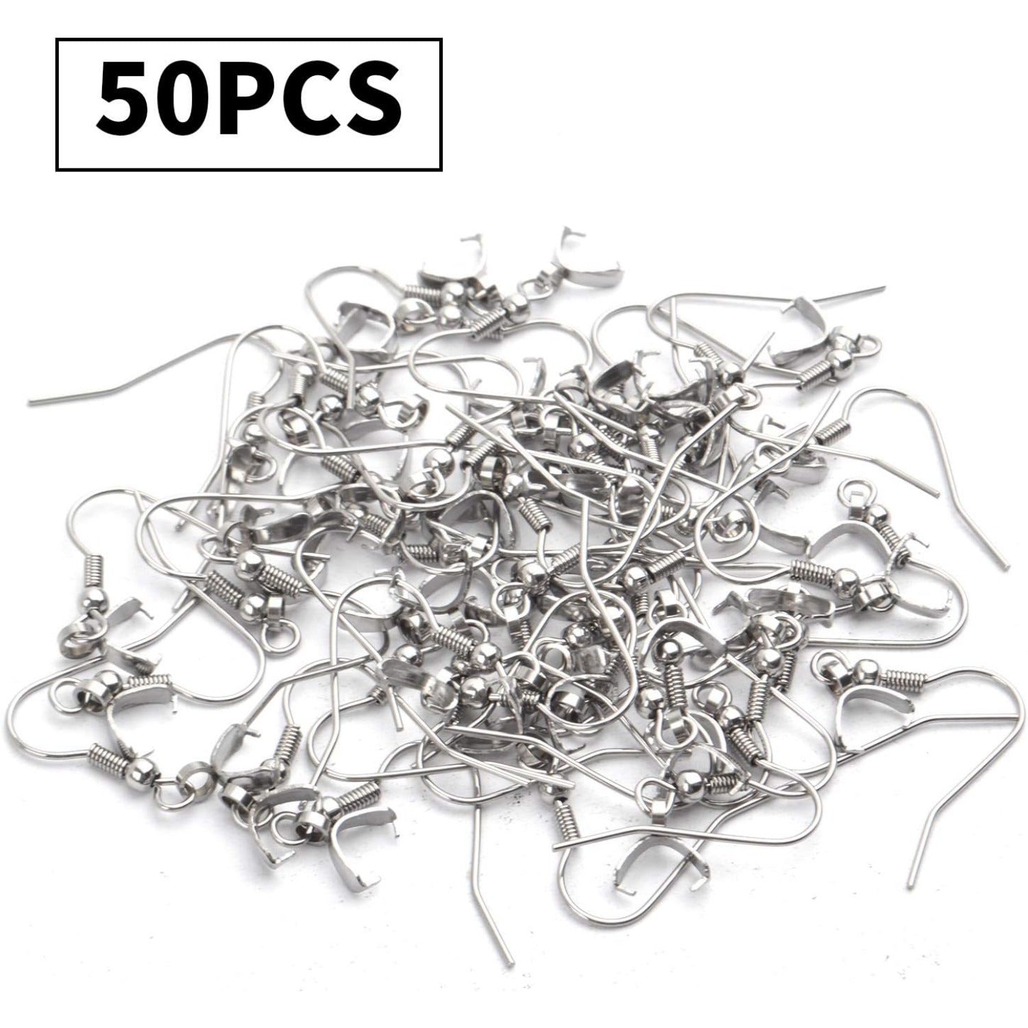 Hypoallergenic Stainless Steel French Earring Hooks - 50pcs Wire Ear Ball Hooks With Pendant Clasp for Jewelry Making Crafts DIY, Silver