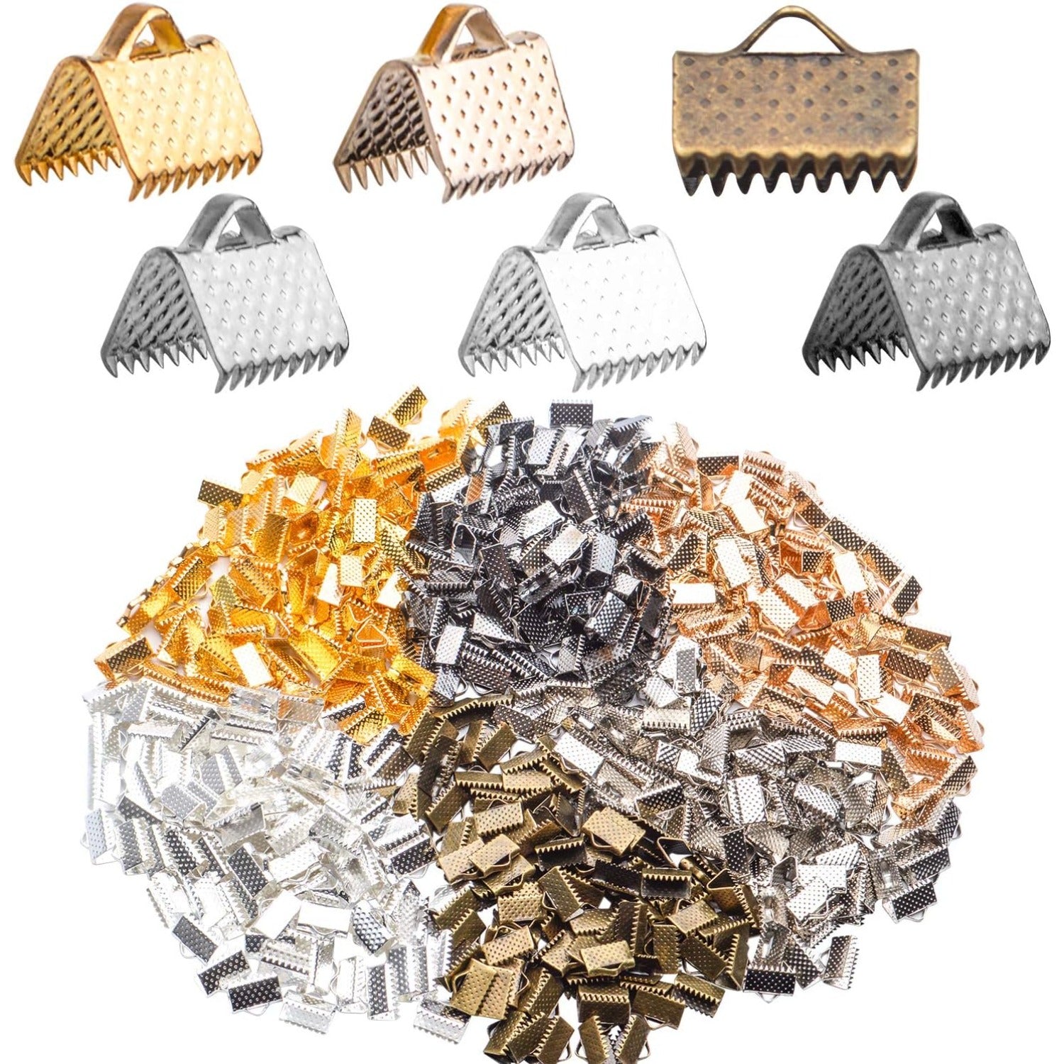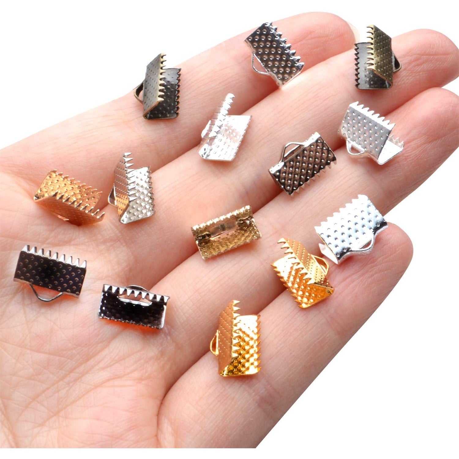 Pinch Crimp Ends,600Pcs Alloy Ribbon Clamps Ends Mixed Colors Ribbon Ends Crimp Ends Jewelry Making Findings for DIY Choker Anklets Crafts Making