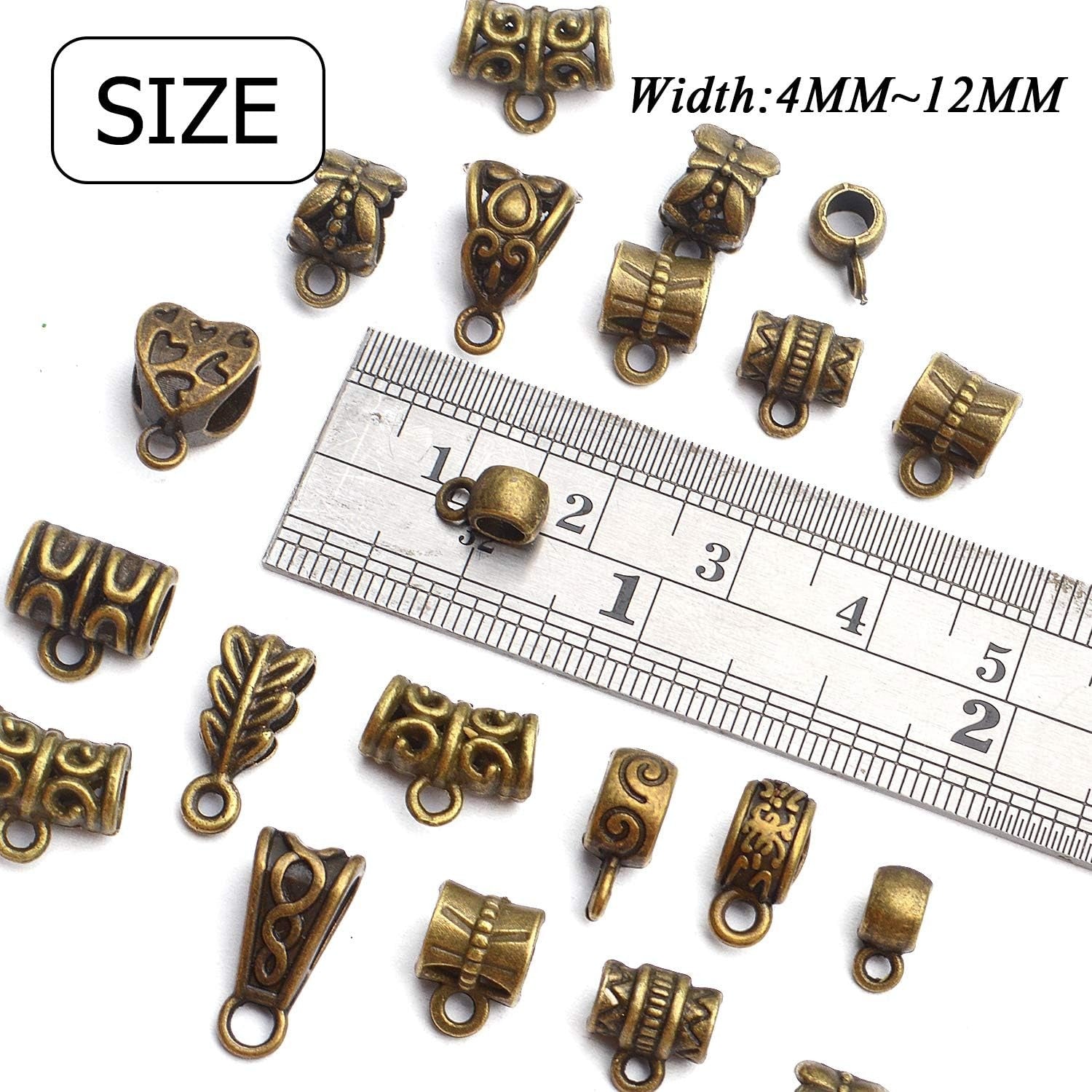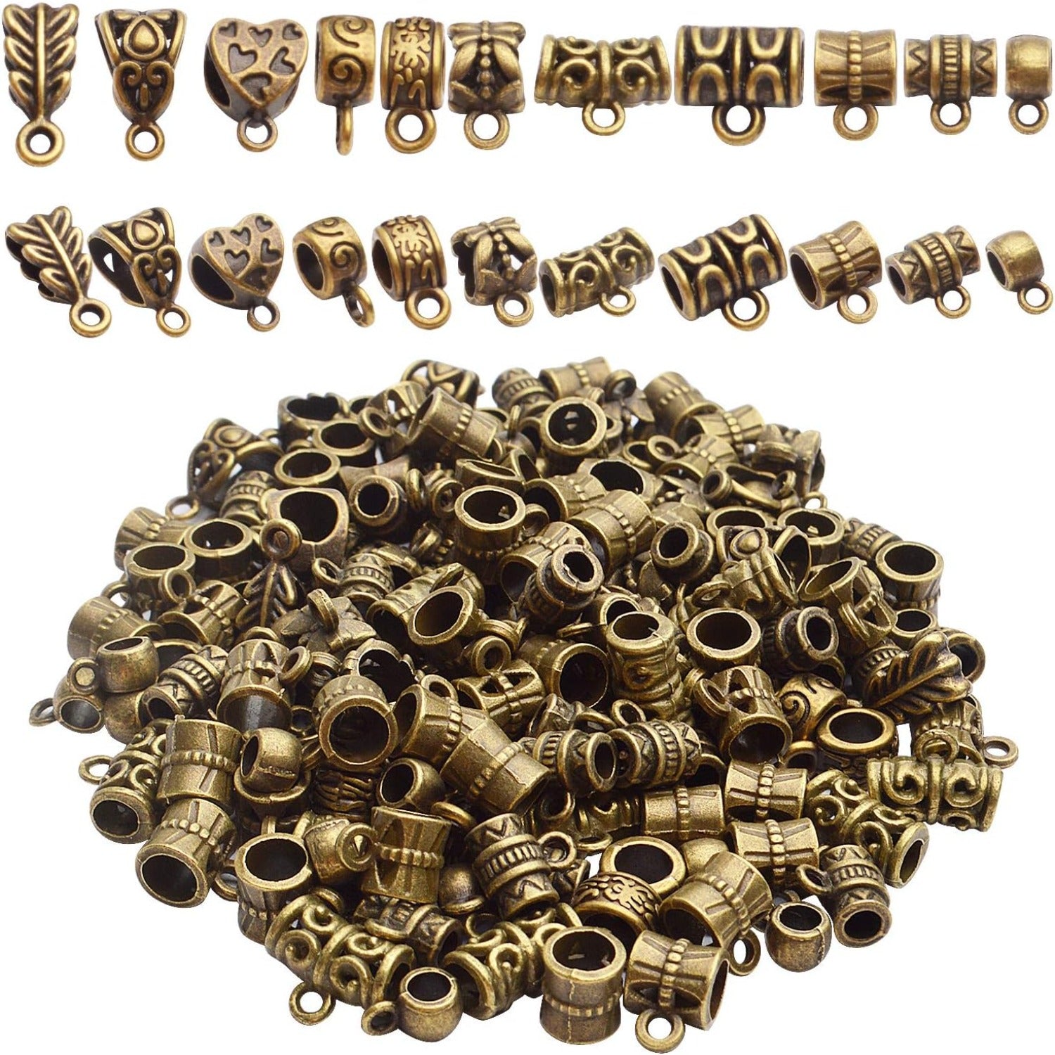 Tibetan Mixed Bail Beads Connectors - 100 Gram Metal Tube Bail Beads & Spacer Hanger Links for European Charm Jewelry Making, Antique Bronze