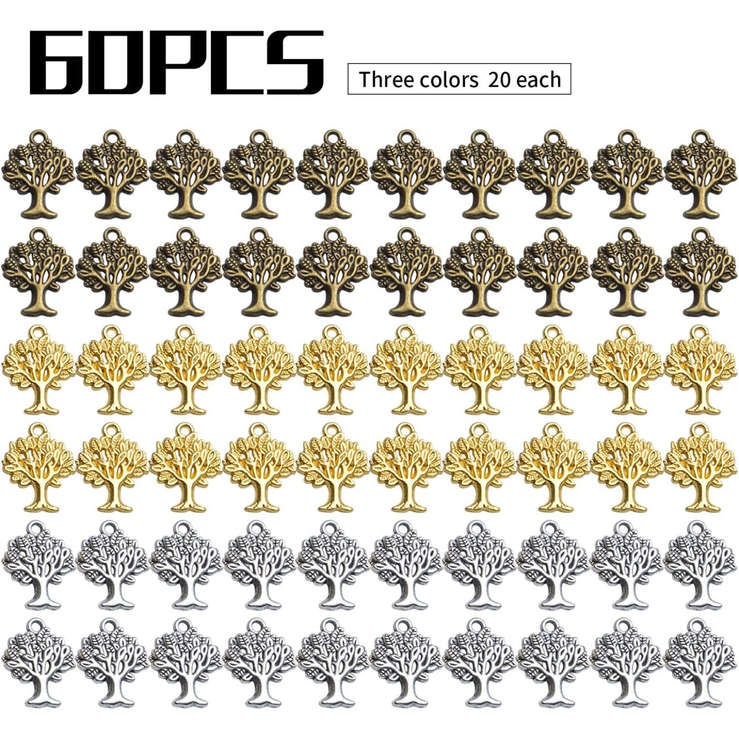 Tree of Life Chrmas,60pcs Wholesale Craft Supplies Tibetan Tree Pendants Charms Vintage Jewelry Making Accessories for DIY Bracelets Necklace,Antique Silver Bronze Golden